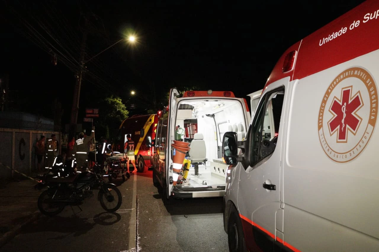 SAMU e Siate prestaram socorro à vítima do atropelamento, que teve parada respiratória e foi encaminhada para uma unidade hospitalar, em situação delicada.