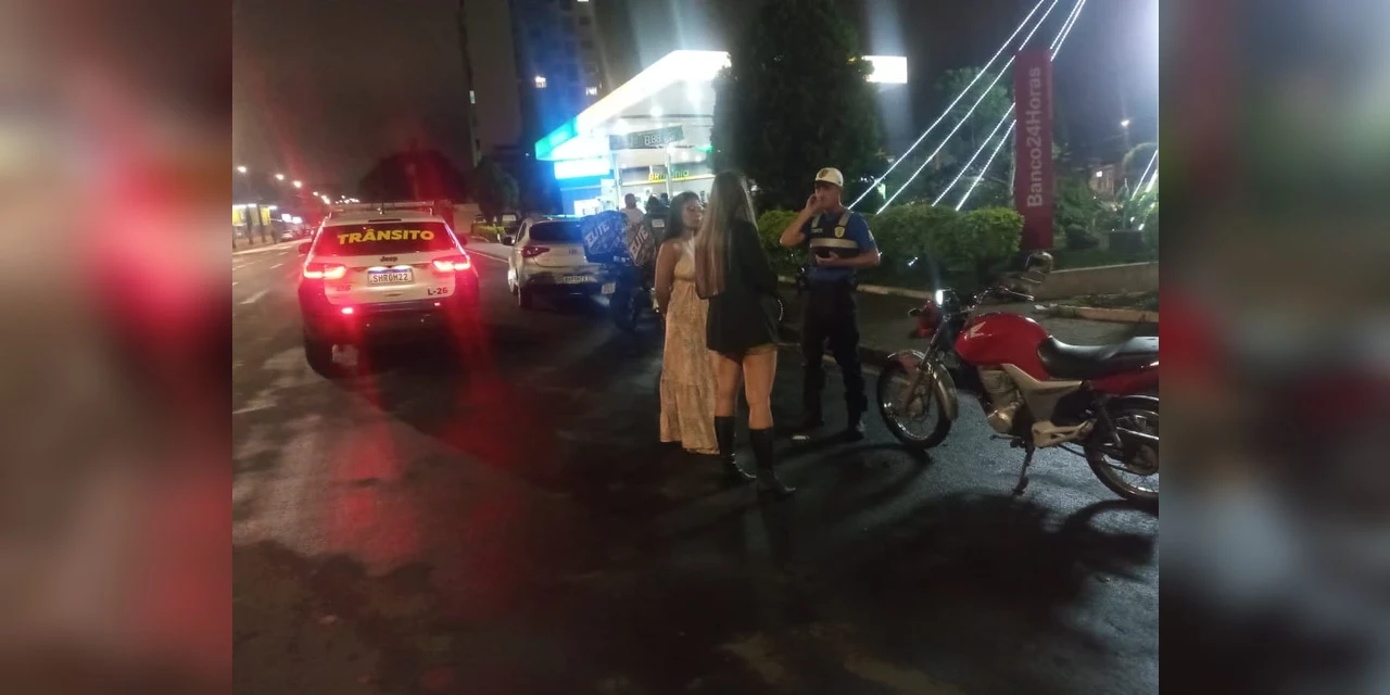 De acordo com os relatos dos condutores envolvidos, o carro transitava pela Avenida Anita Garibaldi, no sentido Centro/Bairro, e realizava a conversão para acessar a Rua Balduíno Taques. No momento da manobra, o veículo colidiu lateralmente com uma motocicleta que seguia na mesma direção e também estava efetuando a conversão para a mesma rua.