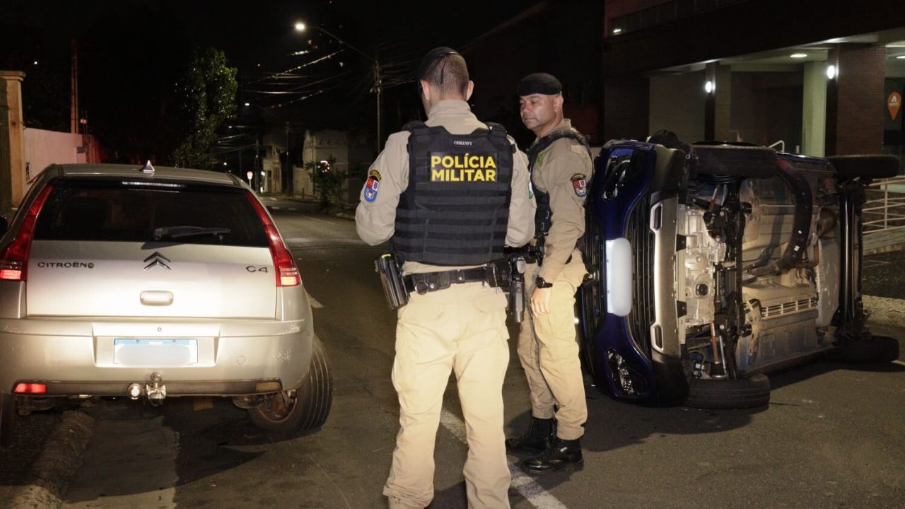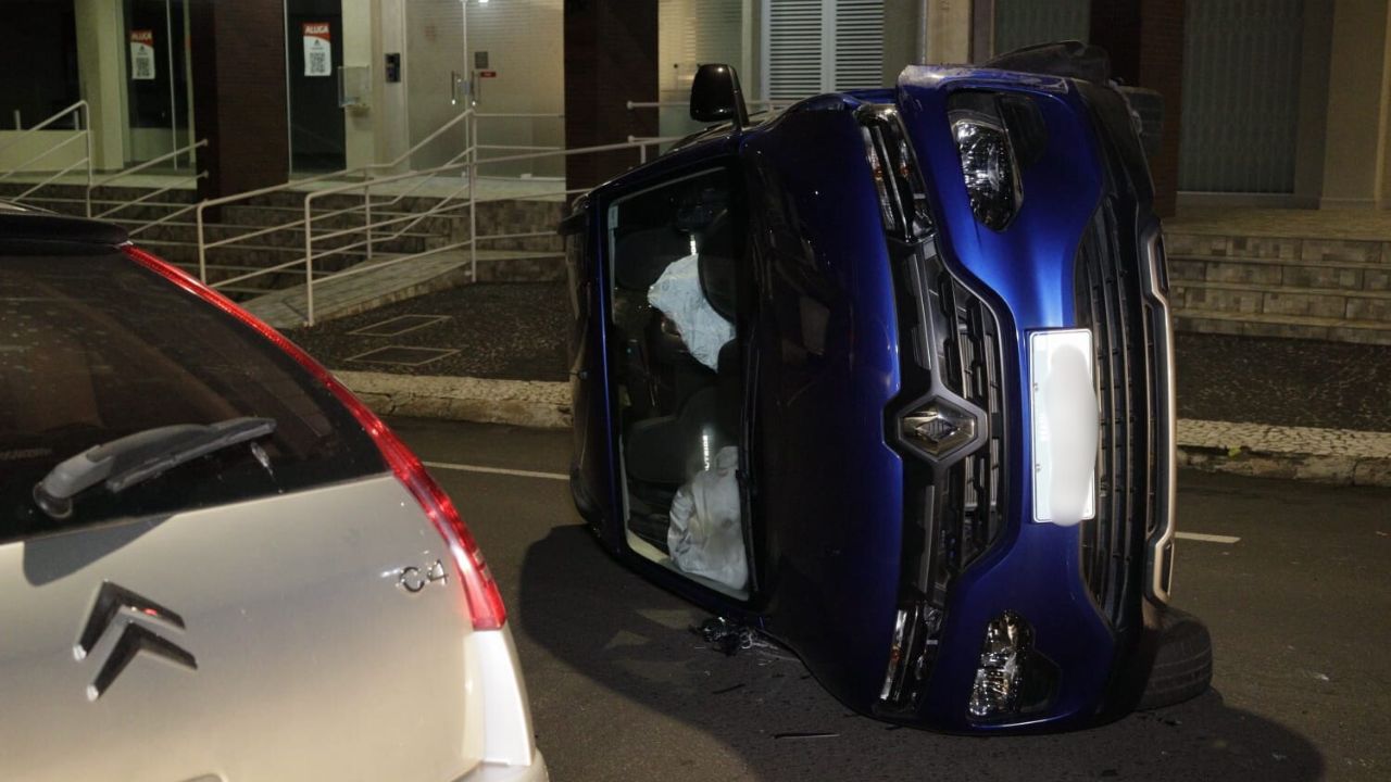 Na madrugada desta quinta-feira (2), por volta de 00h15, uma colisão seguida de tombamento foi registrada na Rua Benjamin Constant, nº 1120, quase esquina com a Rua Dr. Francisco Búzio, região central da cidade.