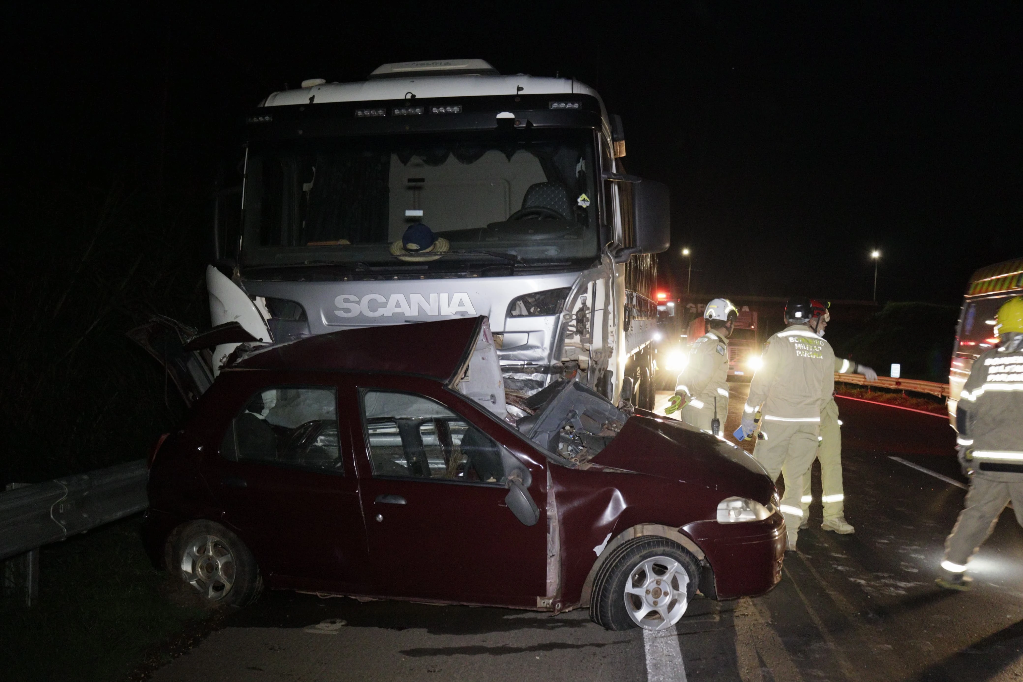 Equipes do Corpo de Bombeiros, Polícia Rodoviária Federal e CCR PRVias foram acionadas, na noite desta quinta-feira (26), para dar atendimento a um grave acidente no km 486 da BR-376, em Ponta Grossa. A fatalidade ocorreu próximo ao viaduto Santa Terezinha.