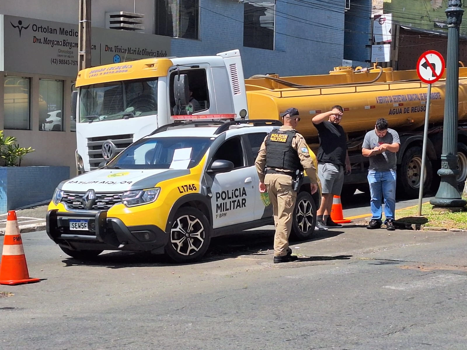 De acordo com informações apuradas no local pela equipe do D'Ponta News, a condutora do Jeep seguia pela Senador Pinheiro Machado e atingiu a lateral da moto ao realizar a conversão para a Francisco Burzio. Segundo a mulher, no momento da colisão, o sol teria refletido no seu rosto, impedindo que enxergasse a motocicleta. Com isso, o condutor da moto caiu no chão e sofreu algumas escoriações pelo corpo.