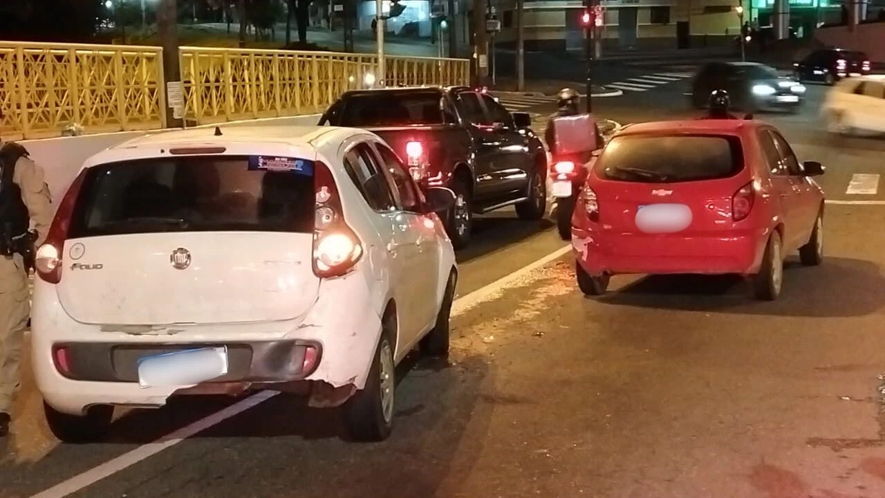 No local, foi constatado um acidente envolvendo um Fiat Palio branco e um Chevrolet Celta vermelho. No Celta estavam três ocupantes: o motorista, de 26 anos, um passageiro masculino, também de 26 anos, e uma passageira, de 22 anos. Apenas o passageiro precisou de atendimento do Samu, apresentando contusão no pulso. Ele recusou encaminhamento ao hospital.