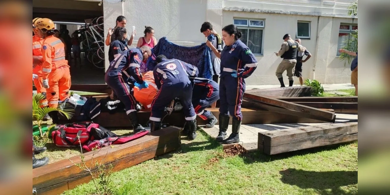 De acordo com a Polícia Civil de Minas Gerais, a vítima e outras quatro crianças, com idades entre 4 e 10 anos, brincavam na área externa do residencial quando a estrutura de madeira cedeu e caiu sobre elas.