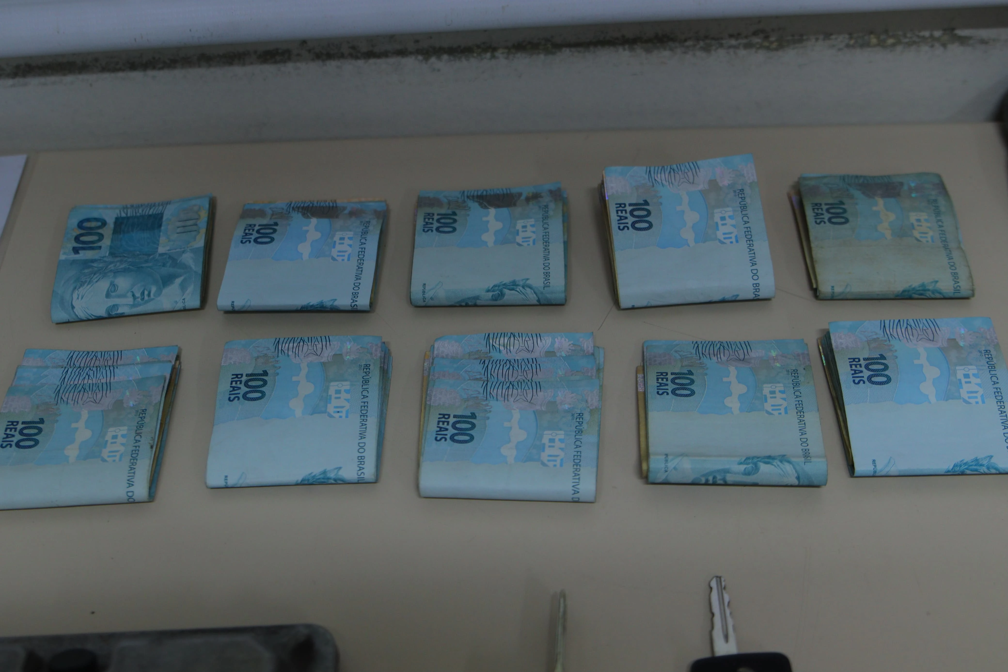 Com o suspeito morto, foi apreendido um revólver com munições deflagradas. No primeiro veículo abandonado pela quadrilha, a PM encontrou cerca de R$ 10 mil em dinheiro, além de celulares, facas e ferramentas usadas nos crimes.