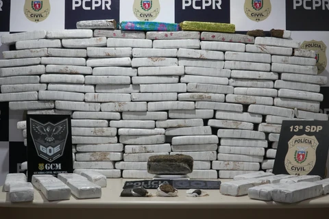 A Polícia Civil e a equipe GOE (Grupamento de Operações Especiais), da Guarda Civil Municipal de Ponta Grossa apreenderam, nesta quarta-feira (18), cerca de 100 kg de maconha em uma residência no Jardim Carvalho, usada como ponto de depósito e distribuição de drogas.