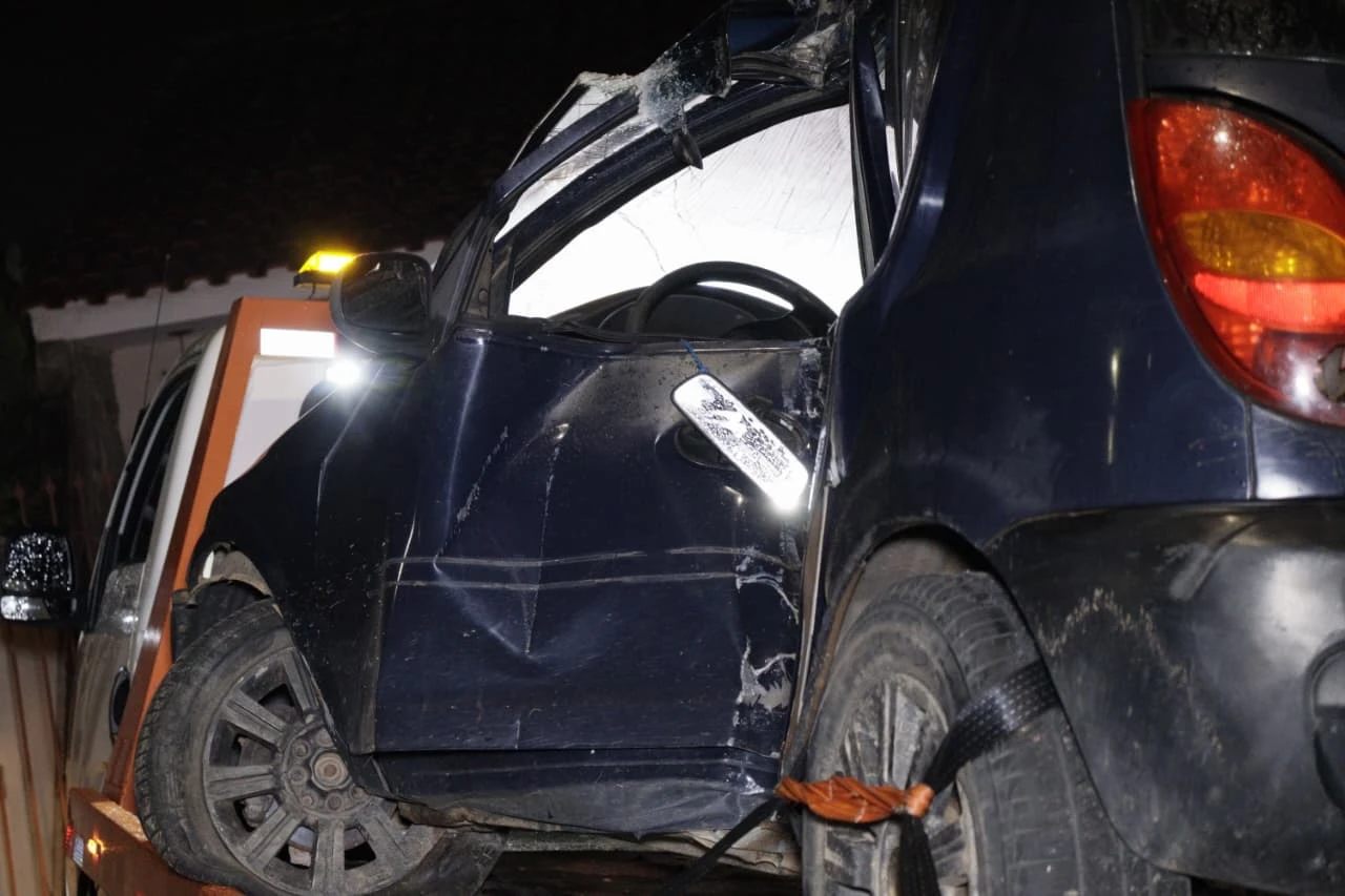 No local, foi encontrado um Chevrolet Celta azul com a parte frontal bastante danificada após o impacto. Segundo relatos de moradores, o condutor teria saído do automóvel por uma das janelas, pegado uma lata de cerveja e deixado o local, abandonando o carro na via.