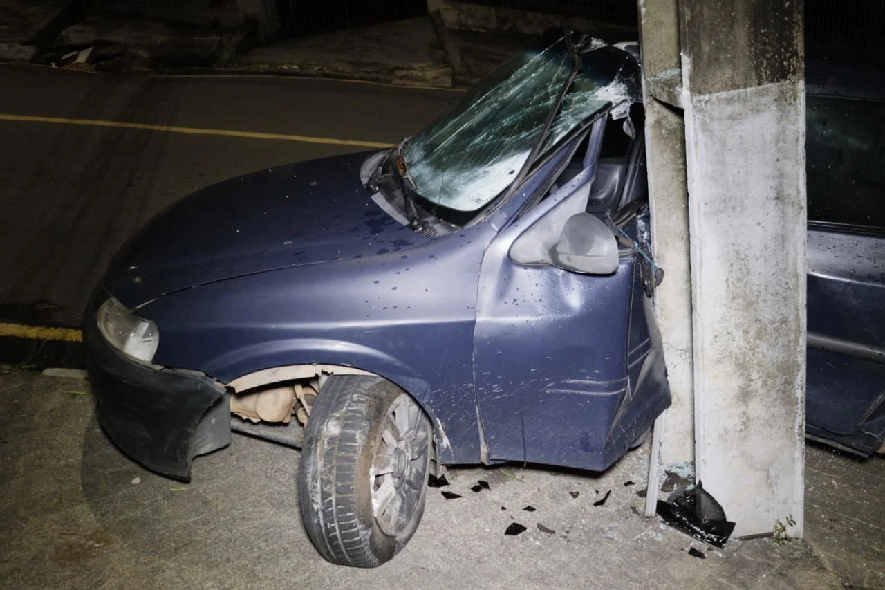 Um veículo colidiu contra um poste na madrugada deste sábado (14), por volta das 2h55, na Rua Aluízio de Azevedo, nas proximidades do Condomínio Portal da Serra, na região de Olarias. O acidente mobilizou equipes do Corpo de Bombeiros, do trânsito viário e, posteriormente, do Samu.
