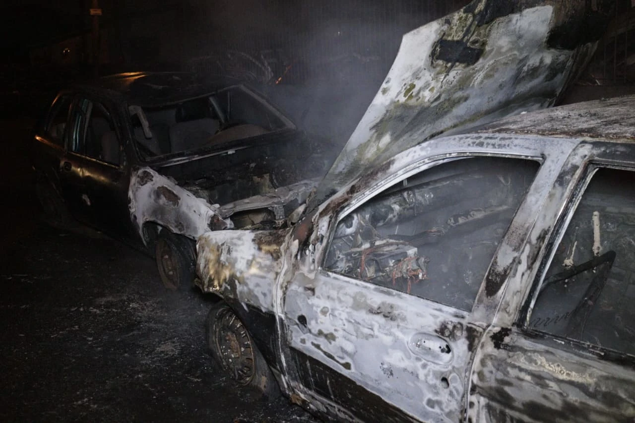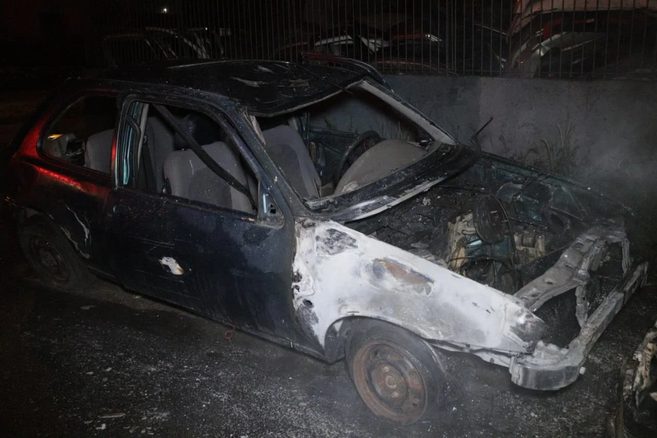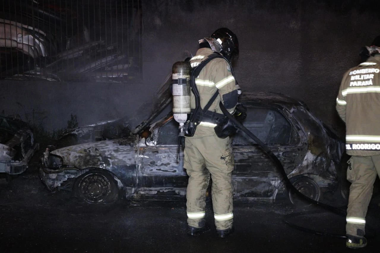 Ao chegar no local, os bombeiros constataram que dois veículos estavam em chamas. Um Ford Fiesta sofreu danos apenas na parte dianteira. De acordo com informações colhidas no local, o carro não possuía motor e seria vendido como sucata. Já o segundo veículo, um Fiat Palio, foi completamente consumido pelo fogo.