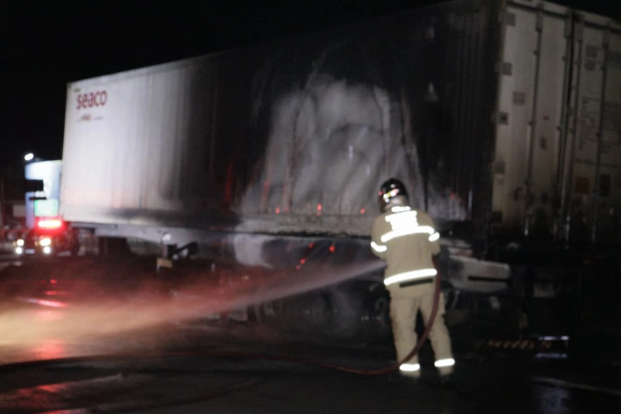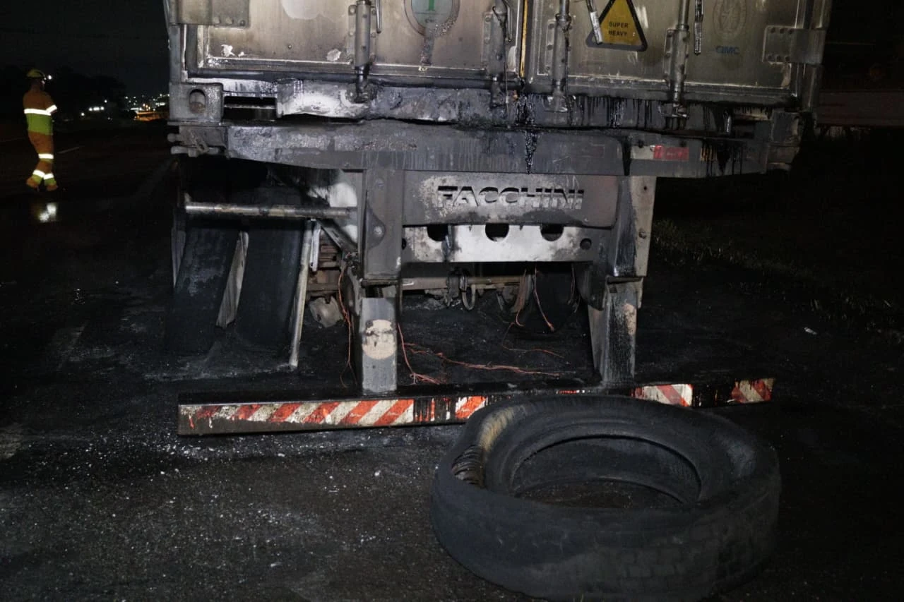 Equipes do Corpo de Bombeiros foram acionadas e, ao chegarem ao local, constataram que as chamas haviam se iniciado no rodado da carreta e se espalhado rapidamente, alcançando pelo menos metade da carga. O motorista, de aproximadamente 40 anos, conseguiu desengatar o cavalo mecânico no momento em que percebeu o início do incêndio, evitando danos maiores ao veículo.