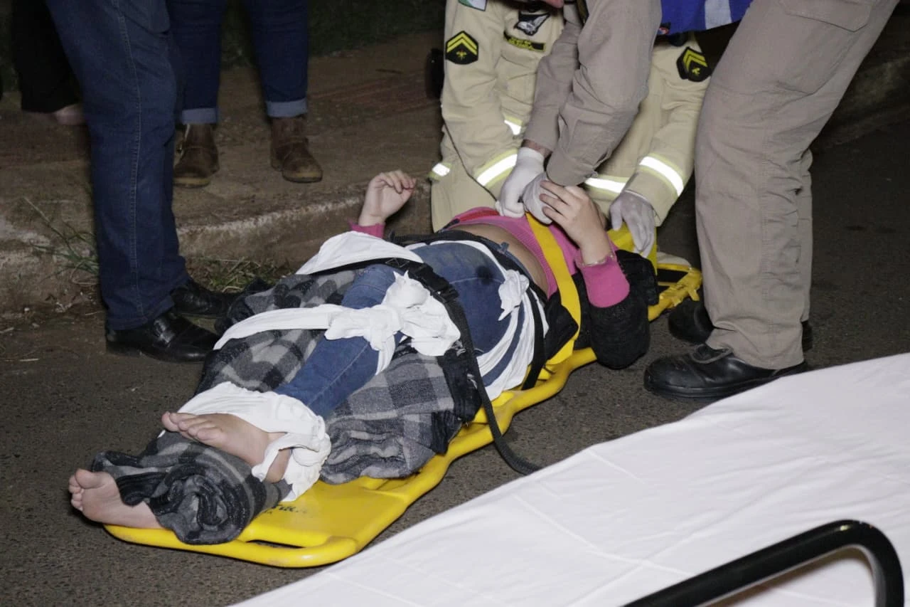 De acordo com as informações apuradas no local, duas pessoas ficaram feridas. O piloto da motocicleta, um homem de 20 anos, sofreu contusões e escoriações pelo corpo. Ele foi encaminhado à UPA de Uvaranas. A passageira, também de 20 anos, teve uma fratura exposta no fêmur esquerdo e foi levada ao Hospital Universitário, em estado considerado grave. A motocicleta, uma BMW, já havia sido retirada do local antes da chegada das equipes de socorro.