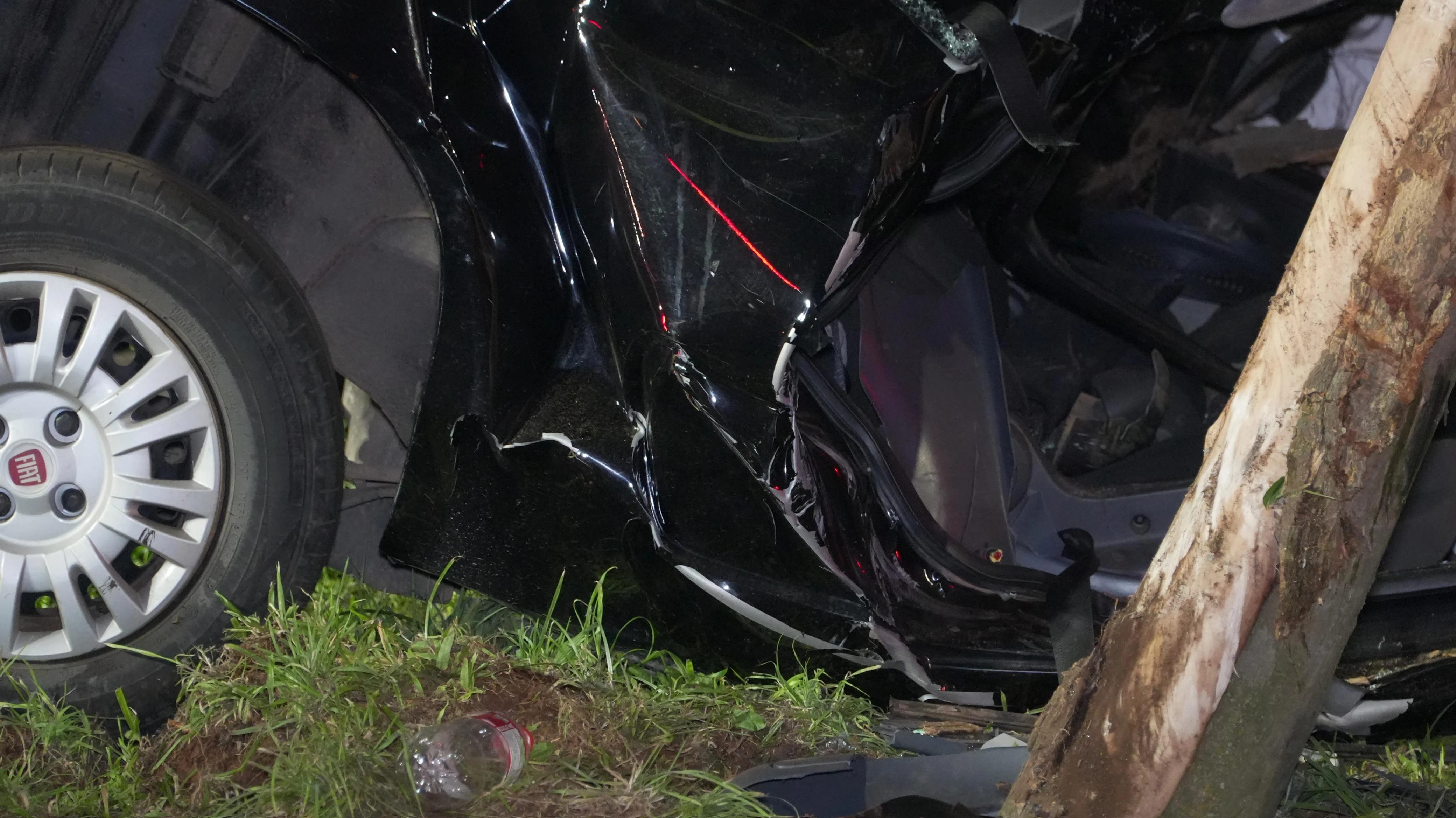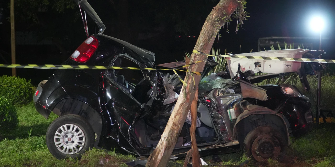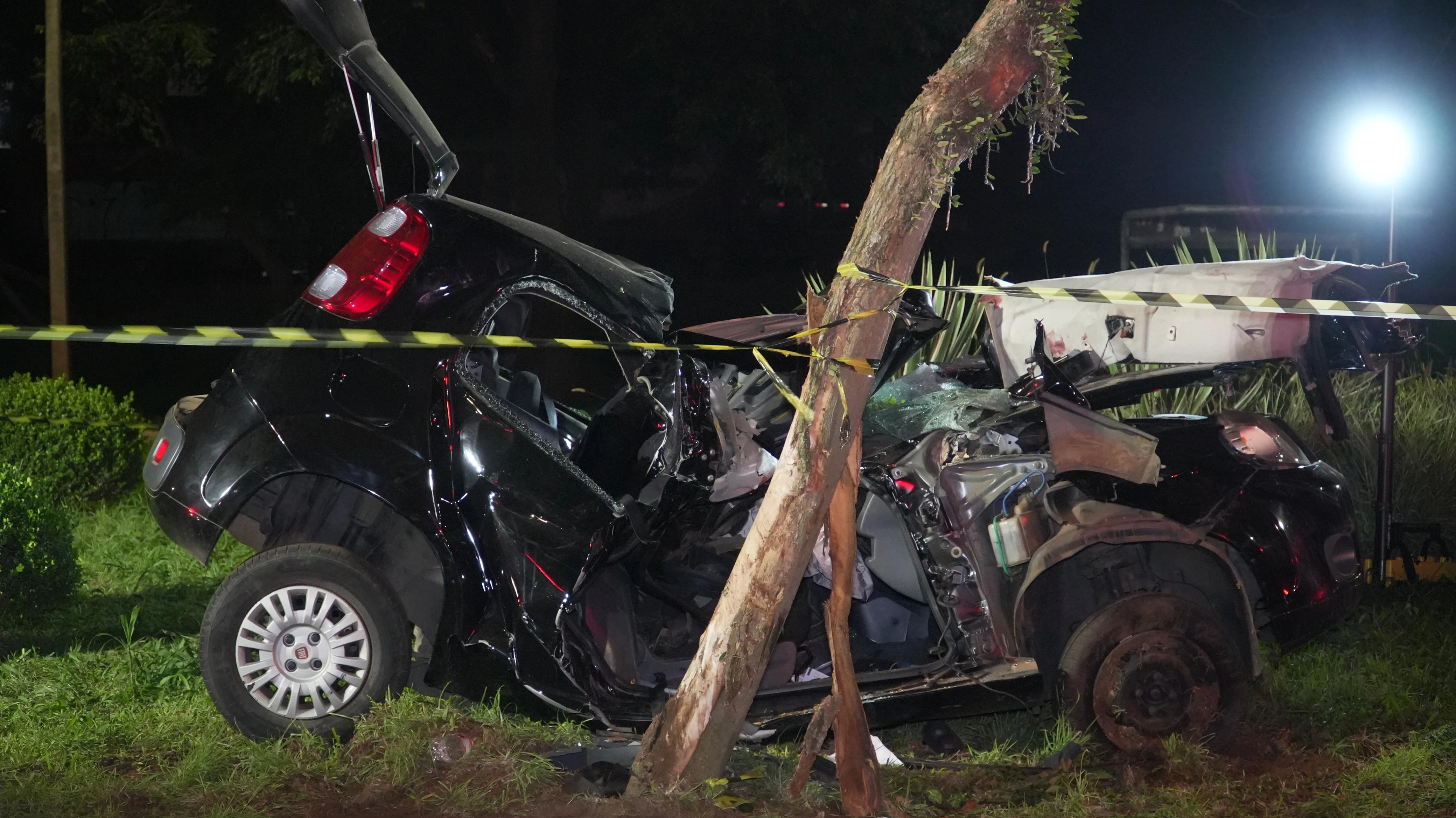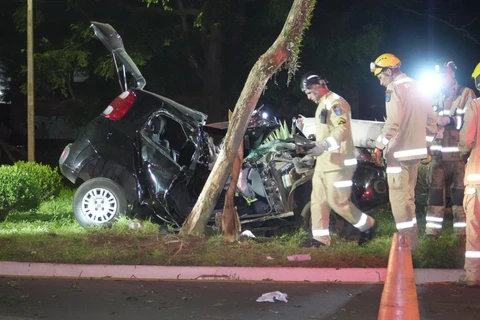 O acidente envolveu um veículo Fiat Uno que saiu da pista, invadiu o canteiro central da via e colidiu lateralmente contra uma árvore. Com a força do impacto, dois jovens ficaram feridos e presos às ferragens do automóvel.