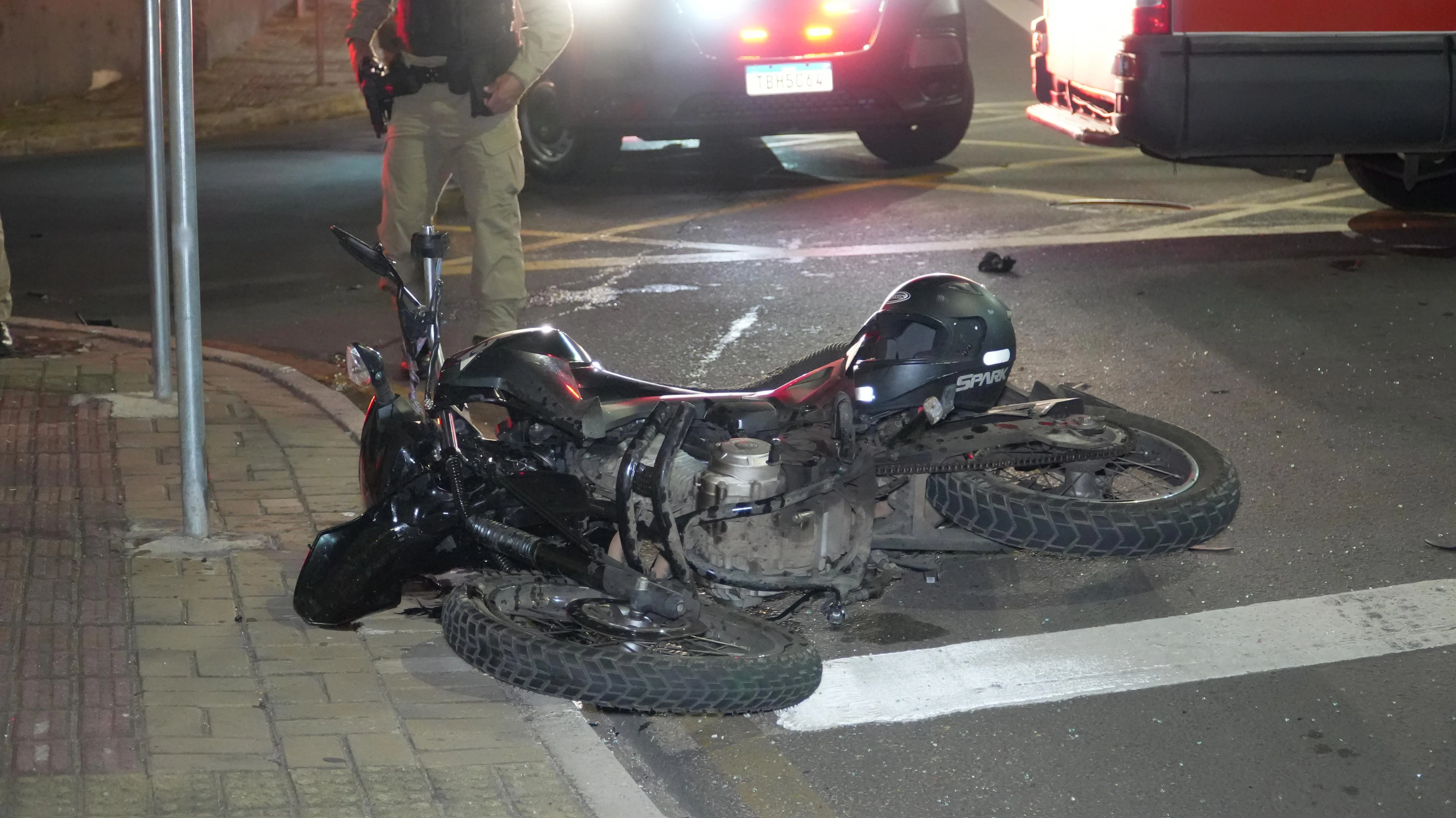 Já o motociclista, de 43 anos, que atua como segurança tático, foi encontrado em estado grave. Ele apresentava lesão na mão, trauma no tórax e dificuldade para respirar. A equipe de socorro o localizou convulsionando. Diante da gravidade do quadro, a vítima precisou ser entubada ainda no atendimento pré-hospitalar e foi encaminhada ao Hospital Regional.