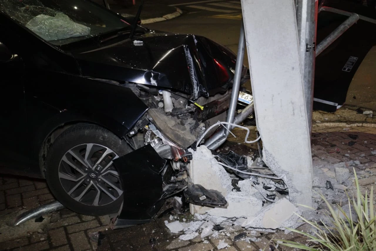 O veículo envolvido, um Hyundai HB-20, seguia pela rua Dr. Paula Xavier no sentido centro quando colidiu contra um poste localizado na esquina de um posto de combustíveis Shell. O impacto foi forte e provocou a quebra do poste, que permaneceu de pé devido aos fios de energia.