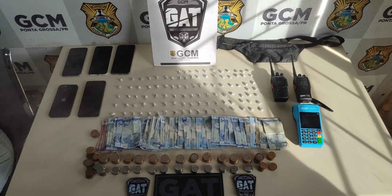 A Guarda Civil Municipal (GCM) de Ponta Grossa desmantelou um ponto de venda de substâncias entorpecentes ilícitas, no bairro de Uvaranas, na tarde de sexta (16), depois de atender a um chamado inicial para verificar o furto de areia de uma obra pública. O Centro de Inteligência e Operações de Segurança acionou a equipe do Grupamento de Ações Táticas (GAT), por volta das 13h30, para verificar o furto de areia em um parque no bairro de Uvaranas.