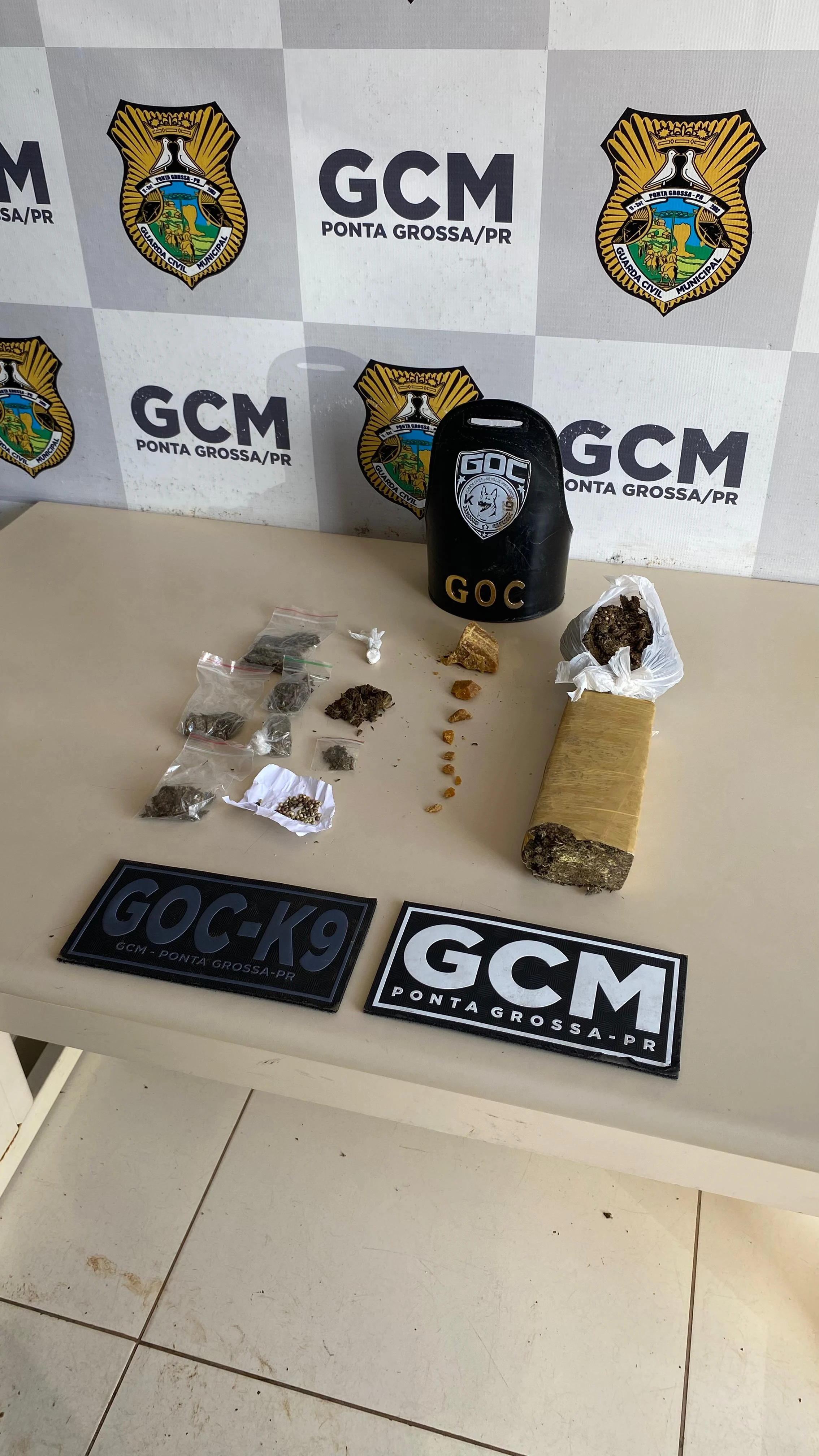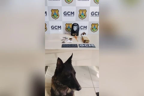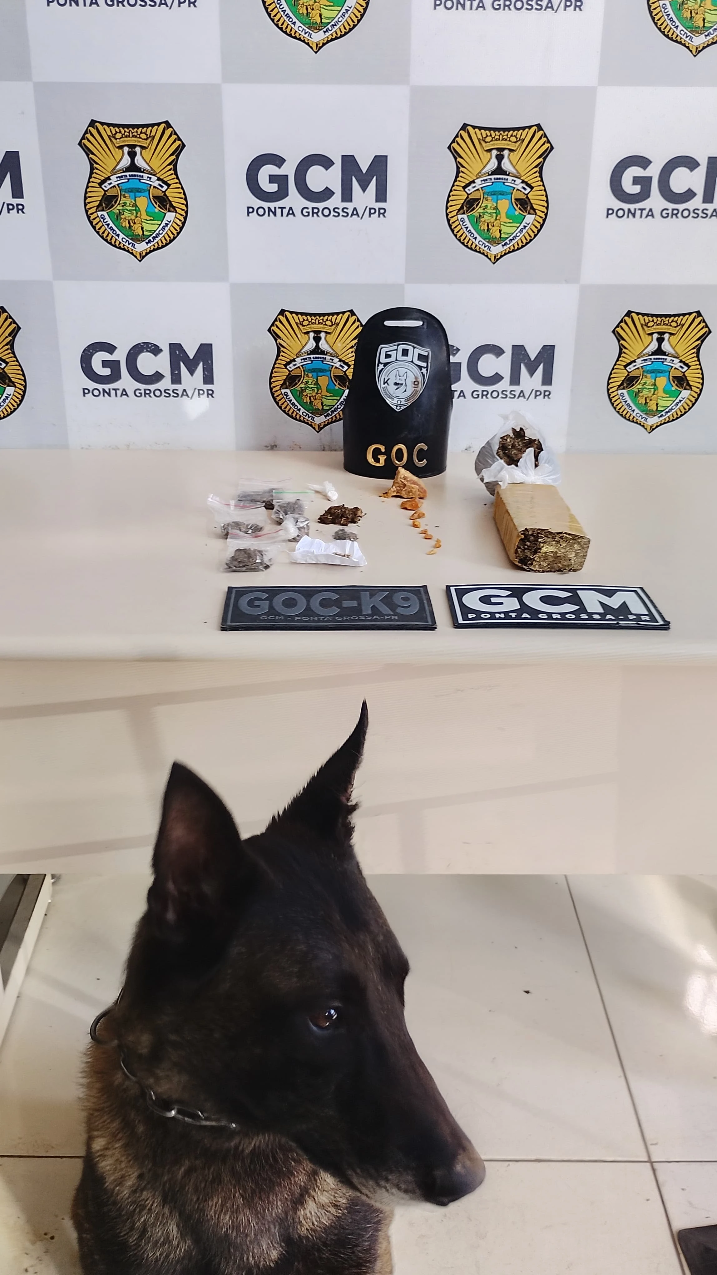 Enquanto se deslocava para prestar apoio, a outra equipe localizou uma embalagem plástica branca, com cerca de 45 gramas de substância análoga a maconha. A partir daí, foi acionado o reforço do Grupamento de Operações com Cães (GOC-K9). Nas averiguações, com auxílio do cão farejador Bolt, foi encontrado um tablete de substância análoga a maconha (aproximadamente 465 gramas); mais uma embalagem plástica branca, com 83 gramas de substância análoga a maconha; uma embalagem plástica com cerca de 50 gramas de substância análoga a crack e, por fim, um invólucro com substância análoga a cocaína, sem aferição de peso.