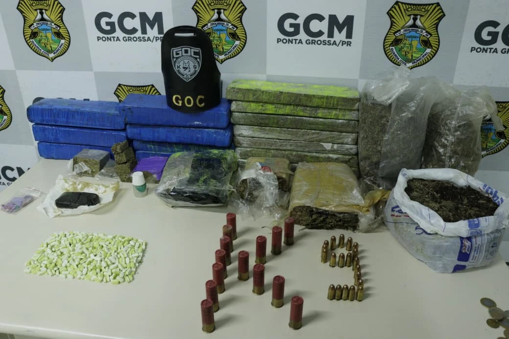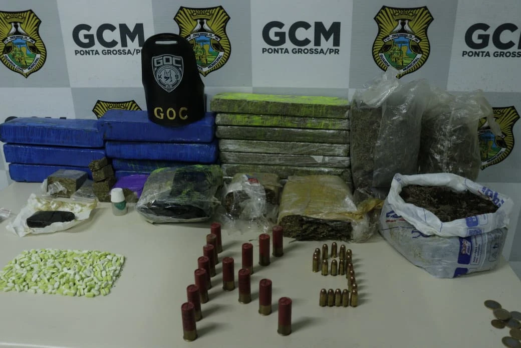 A Guarda Civil Municipal de Ponta Grossa realizou, na tarde desta quinta-feira (23), a apreensão de mais de 17 quilos de drogas, além de diversas munições. A ação ocorreu no bairro Boa Vista.