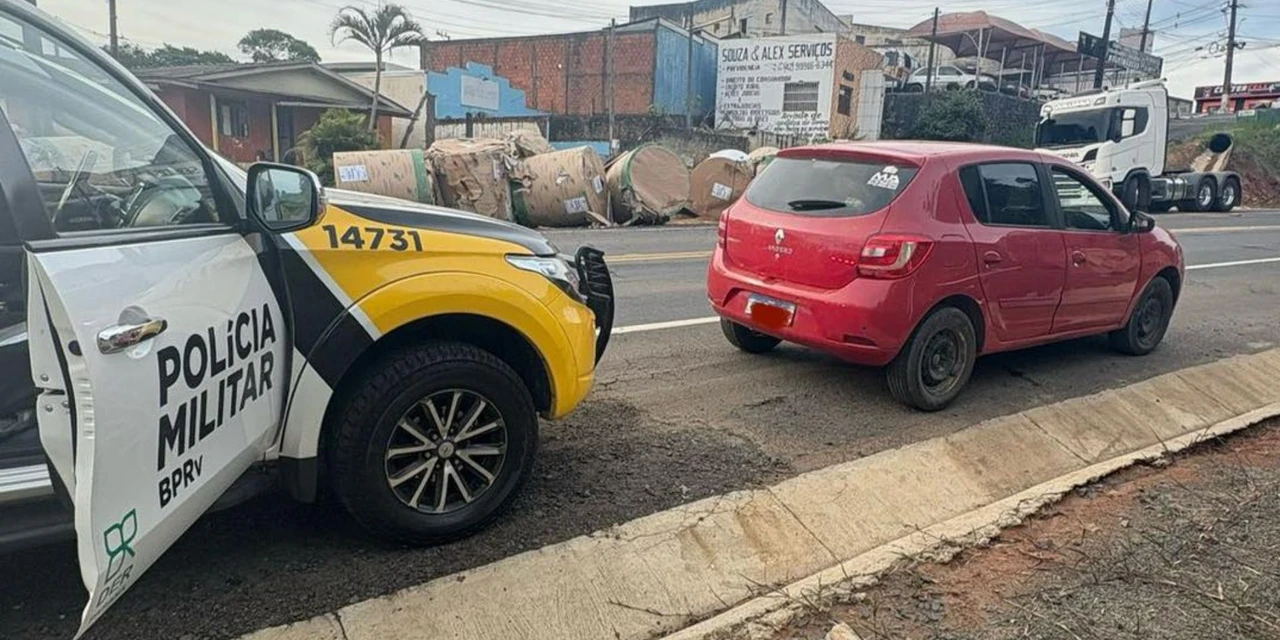 O motorista realizou uma manobra brusca e fugiu do local. Os policiais iniciaram o acompanhamento tático e conseguiram abordar o automóvel no quilômetro 383 da BR-376.
