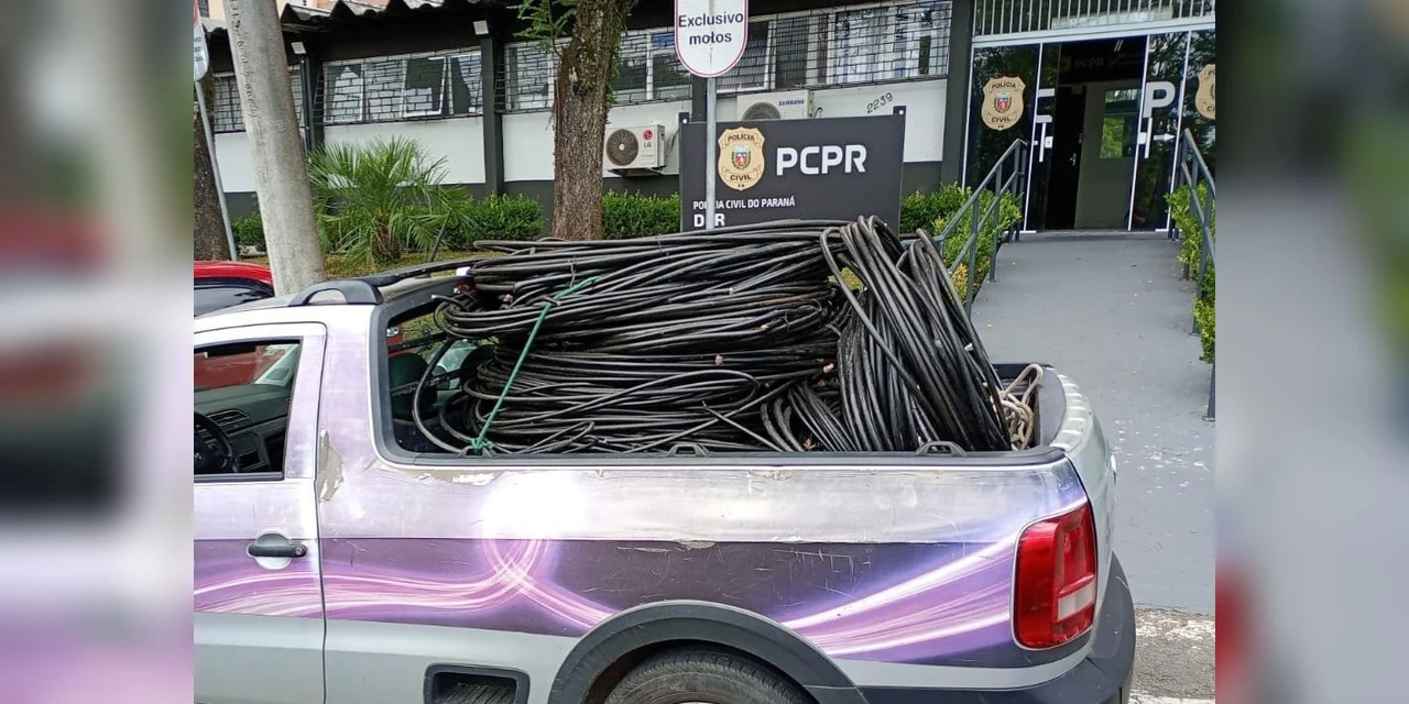 A Polícia Civil do Paraná (PCPR) prendeu um homem, de 50 anos, em flagrante pelo crime de receptação. A captura aconteceu nesta sexta-feira (23), no bairro Novo Mundo, em Curitiba, quando os policiais localizaram uma tonelada de cabos de telefonia sem procedência.