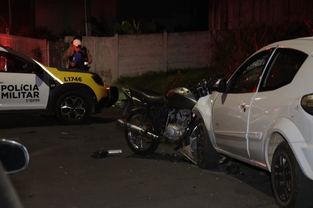 Equipes do SAMU, Polícia Militar e Trânsito Viário foram acionadas, na noite deste domingo (16), para dar atendimento a uma colisão entre um carro e uma moto na região da Coronel Cláudio, em Ponta Grossa.
