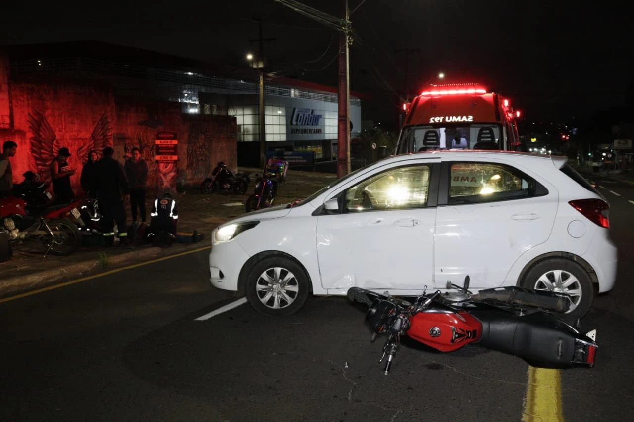 Motociclista fica ferido após colisão contra veículo de aplicativo no Jardim Carvalho