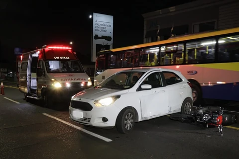 Informações levantadas no local indicam que o veículo saía do estacionamento de uma loja de móveis e que o condutor não viu o motociclista, que seguia pela Avenida Monteiro Lobato, sentido Centro. O Ford Ka seguiria no sentido bairro e foi atingido na lateral.