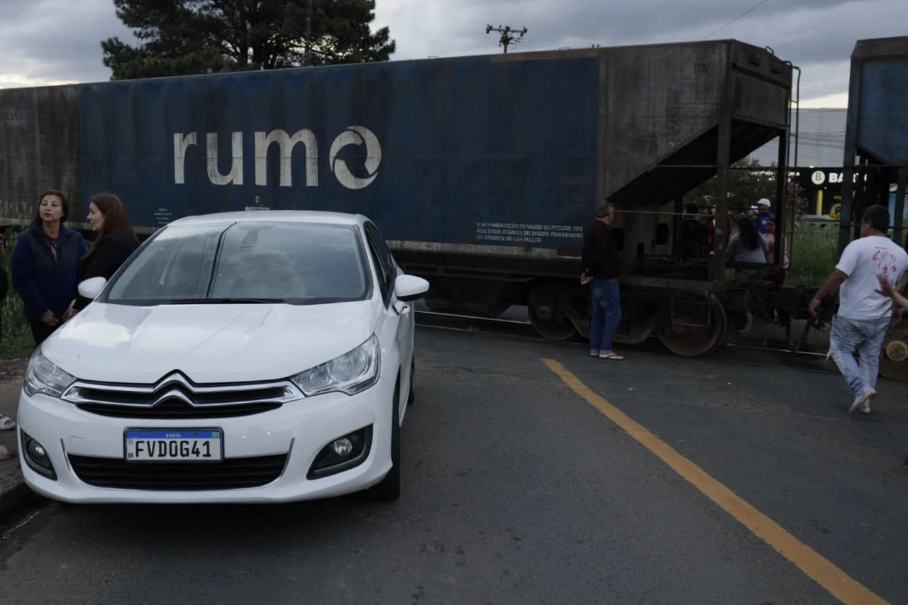 Um jovem, de aproximadamente 18 anos, teve seu carro atingido por um trem na região da Vila Margarida, em Ponta Grossa. A colisão aconteceu no final da tarde desta sexta-feira (31), quando um veículo que estava à sua frente, um Citroën C4, apresentou uma pane elétrica próximo à linha férrea. Ao se distrair com a situação, que reunia populares tentando remover o C4, o motorista do Voyage teve o carro atingido pelo trem.