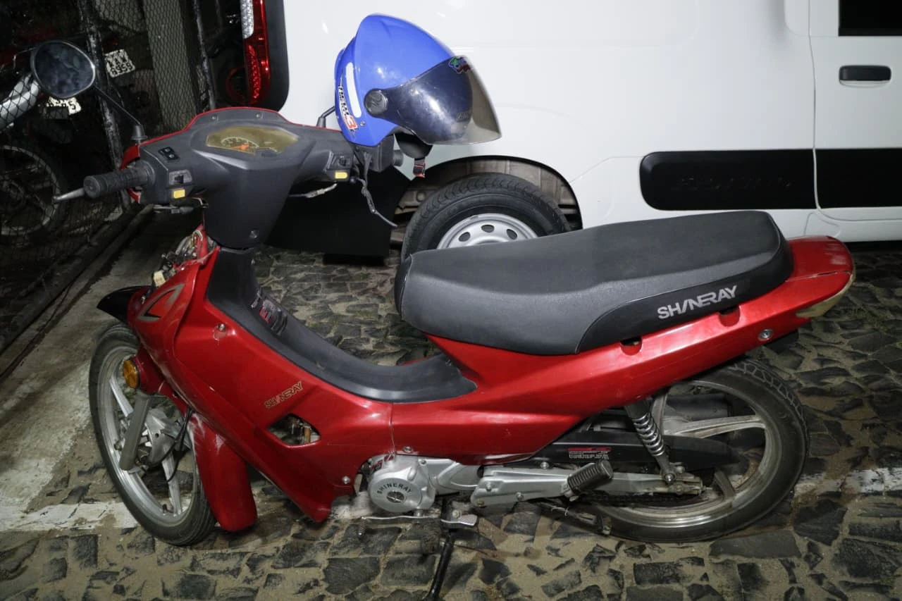 Ao chegar ao endereço indicado, os agentes localizaram a motocicleta e, durante a verificação, encontraram também outra moto e uma bicicleta, ambas com indícios de serem produtos de furto.