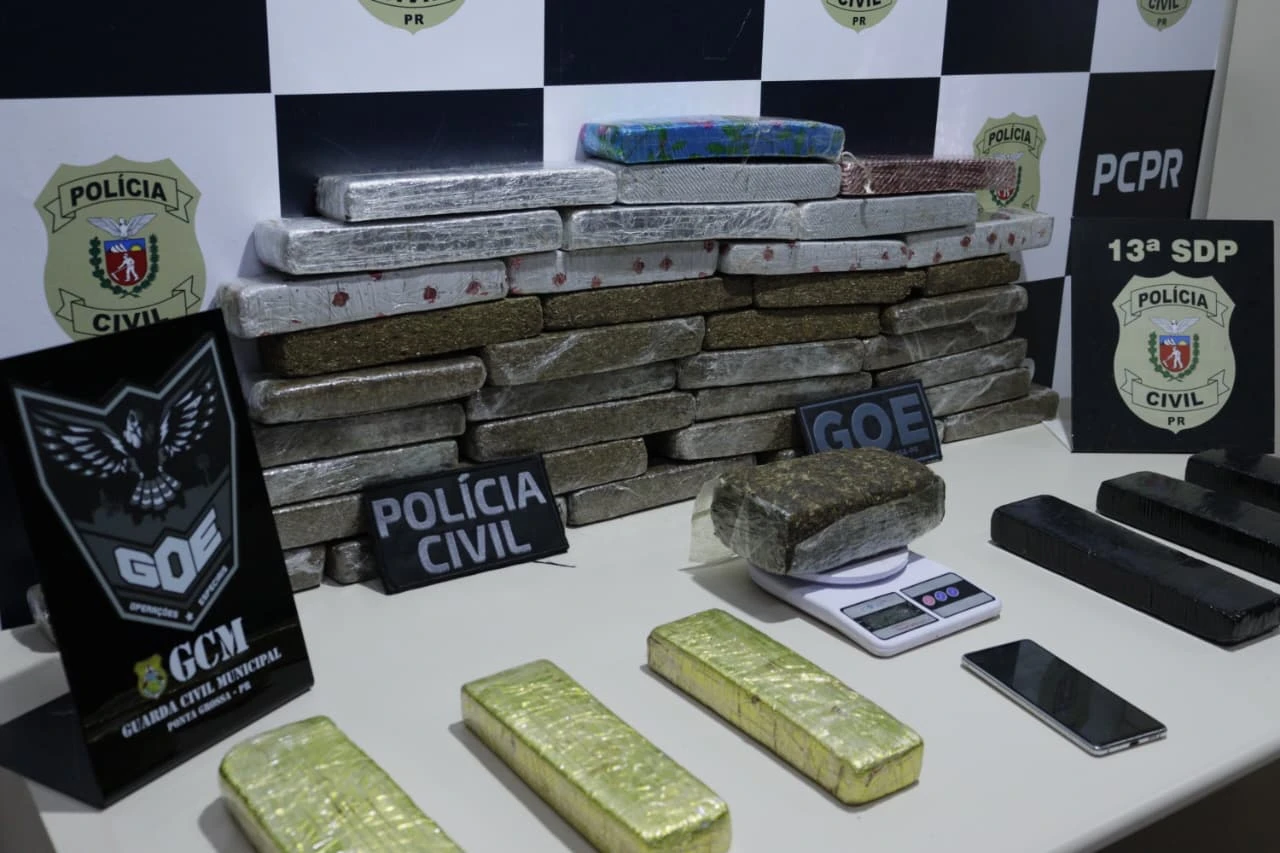 Uma nova ação integrada entre Polícia Civil e Guarda Civil Municipal (GCM) resultou na apreensão de cerca de 30kg de drogas, no bairro São Francisco, em Ponta Grossa, na tarde de sábado (21). A ação foi um desdobramento das investigações iniciadas após a apreensão de outros 100kg de maconha em uma casa no Jardim Carvalho, na quarta (18), efetuada pelo Setor Operacional da 13ª Subdivisão Policial (13ª SDP) e pelo Grupamento de Operações Especiais (GOE), da GCM.