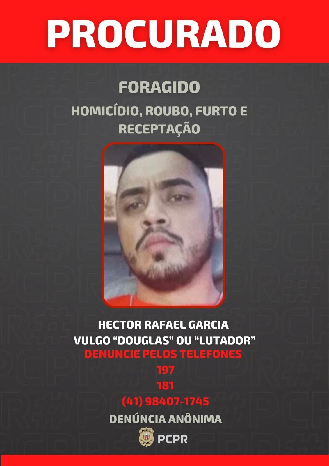 DENÚNCIAS - A PCPR solicita a colaboração da população com informações que levem à captura do foragido. Denúncias podem ser feitas de forma anônima pelos telefones 197, da PCPR, 181 do Disque-Denúncia ou (41) 98407-1745.