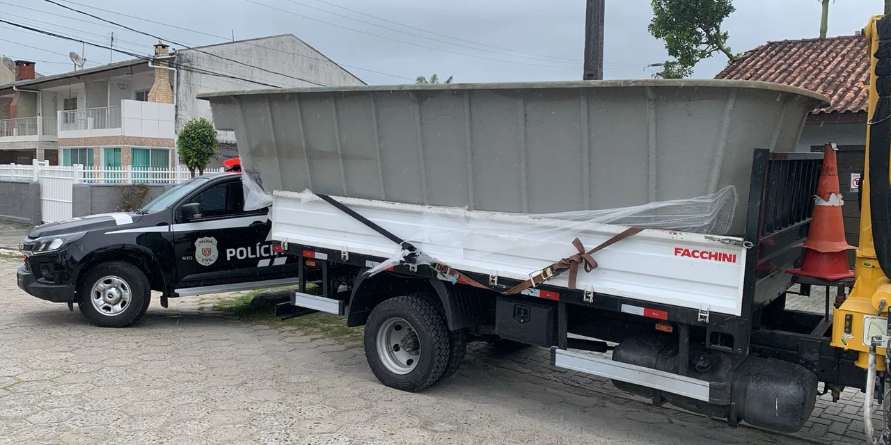 A piscina havia sido subtraída em dezembro de 2025, em Pontal do Paraná, e foi restituída ao proprietário após diligências policiais. As investigações apontaram que o material fazia parte de um esquema de estelionato envolvendo o desvio de materiais de construção civil.