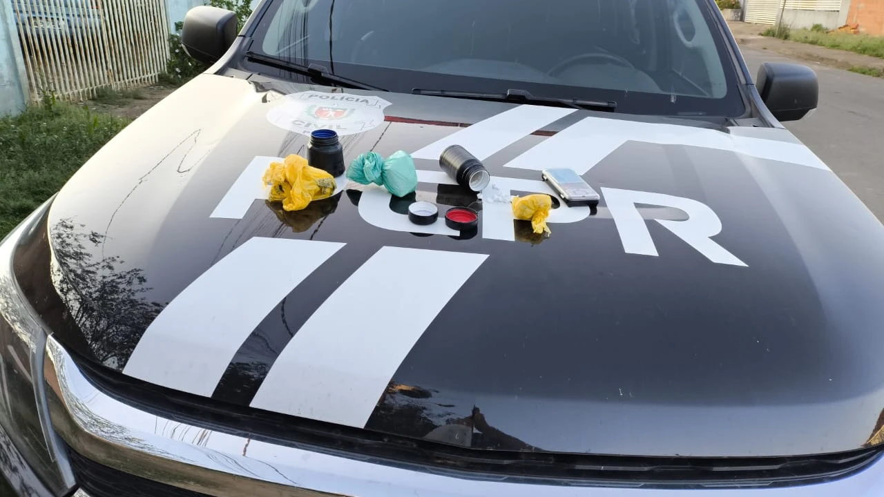 De acordo com informações do delegado José Guilherme Fontana Capraro, foram apreendidas drogas do tipo crack, cocaína e maconha, localizadas com ajuda do cão farejador Bolt.