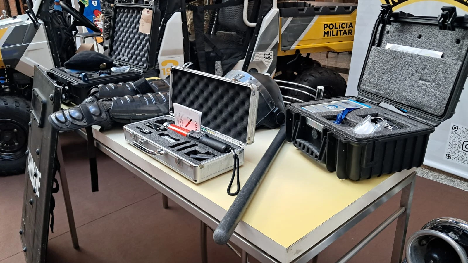A exposição inclui viaturas e equipamentos que a PMPR utiliza para proteger o estado, além de atividades para toda a família, como pintura facial infantil. O objetivo é permitir que a população ouça histórias de dedicação e coragem dos policiais, além de celebrar a data especial.