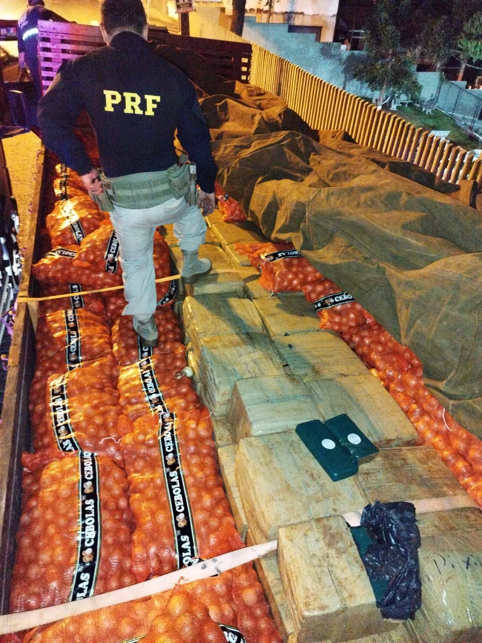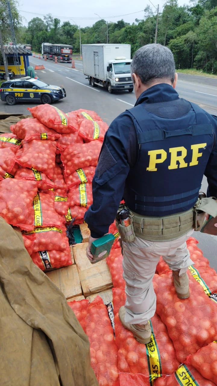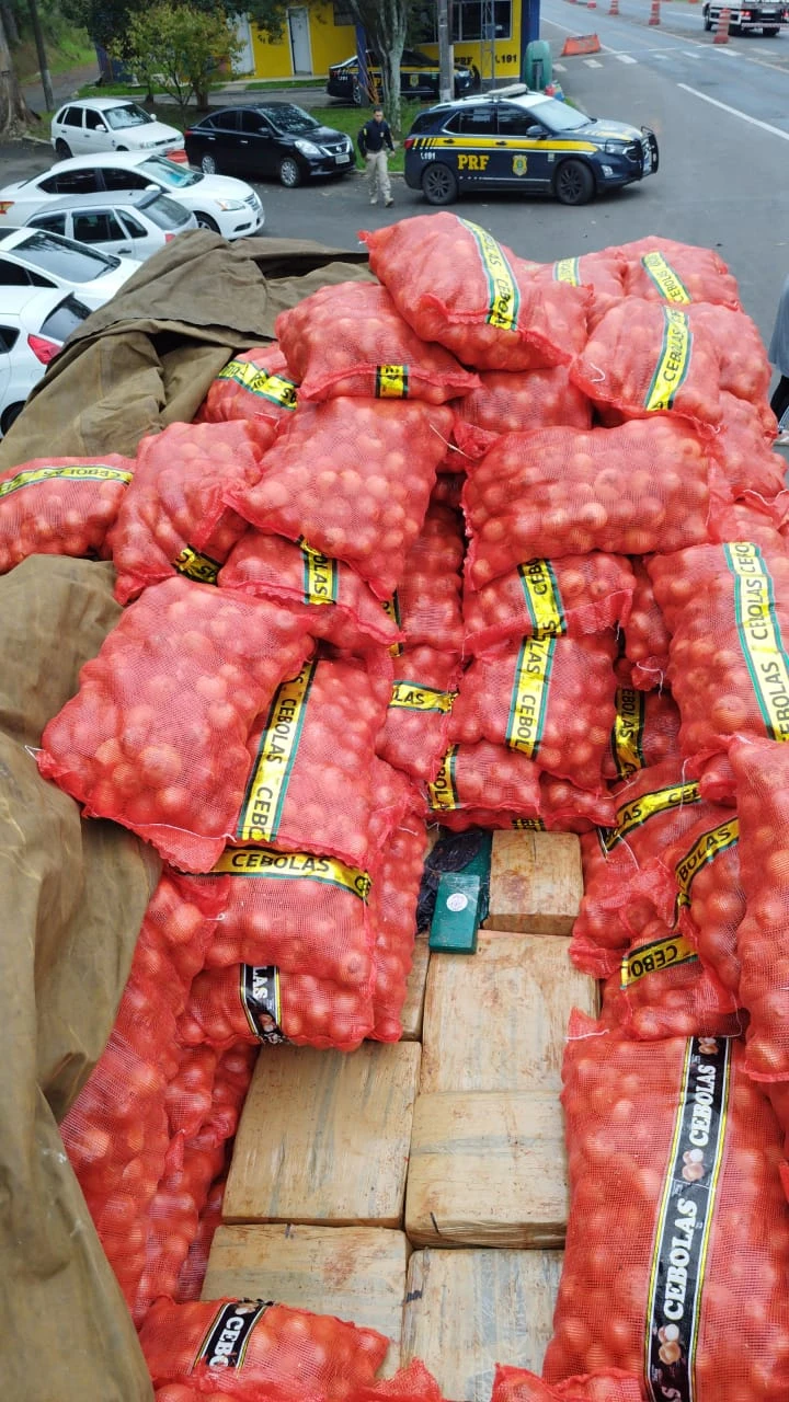 A Polícia Rodoviária Federal (PRF) apreendeu mais de uma tonelada de maconha que estava oculta num veículo que transportava cebolas, em Ponta Grossa, na tarde de sexta (22). Segundo a corporação, o flagrante e a apreensão ocorreram por volta das 17h, na altura do km 476 da BR-376.