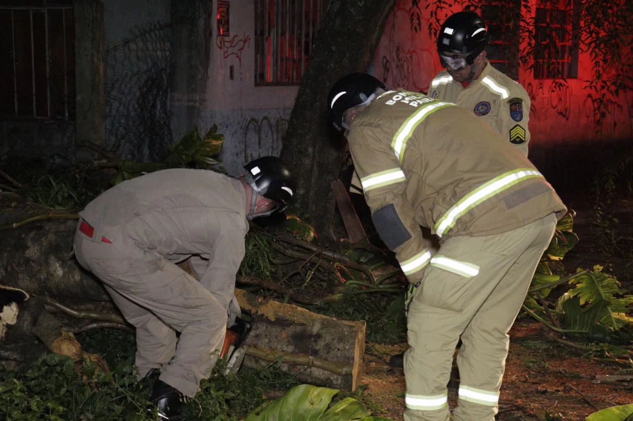 A ocorrência mobilizou o Corpo de Bombeiros e o Patrulhamento Viário. Ao chegar no local, as equipes constaram que a árvore era de grande porte e bloqueava os dois sentidos da via.