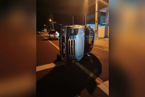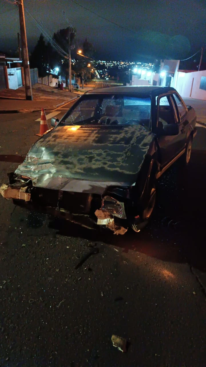 Dois veículos se envolveram em colisão no cruzamento das Ruas Alcebíades de Miranda e João Carlos Cogo, no Parque Nossa Senhora das Graças, no bairro Boa Vista, às 22h33 de sábado (21). Uma caminhonete Ford Ranger capotou depois de colidir contra um VW Apollo.