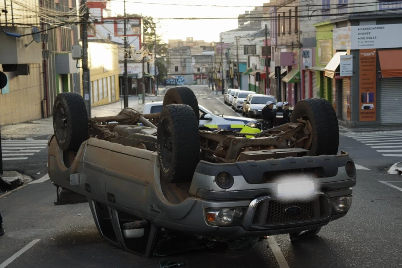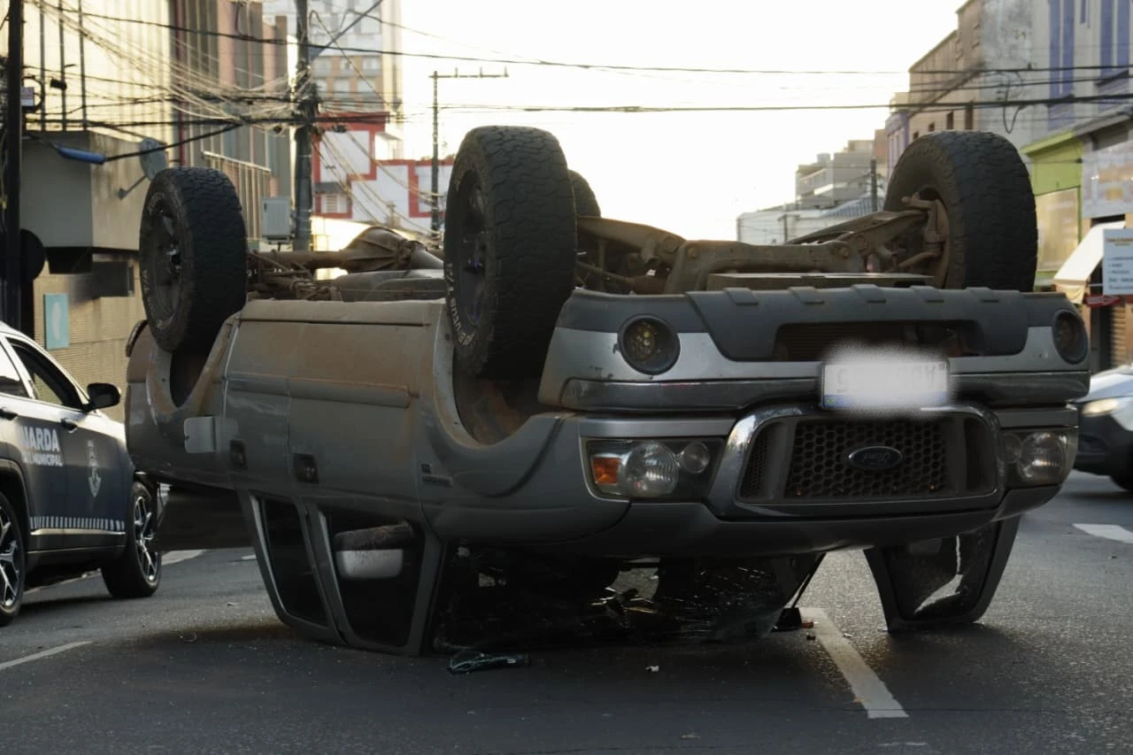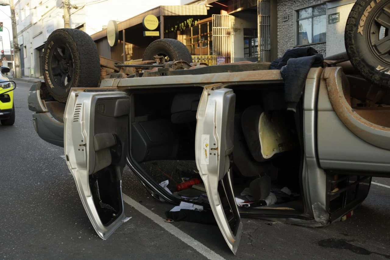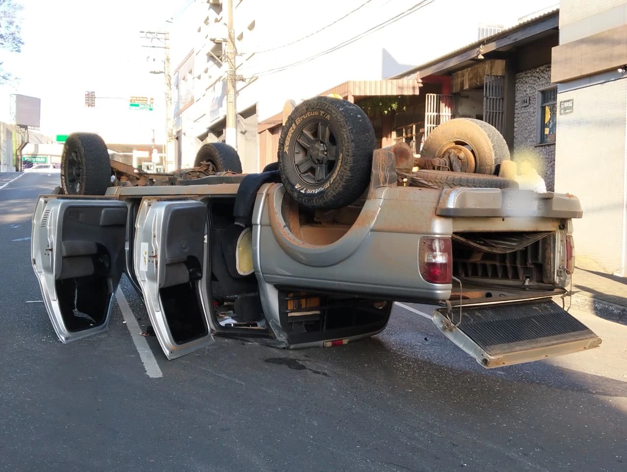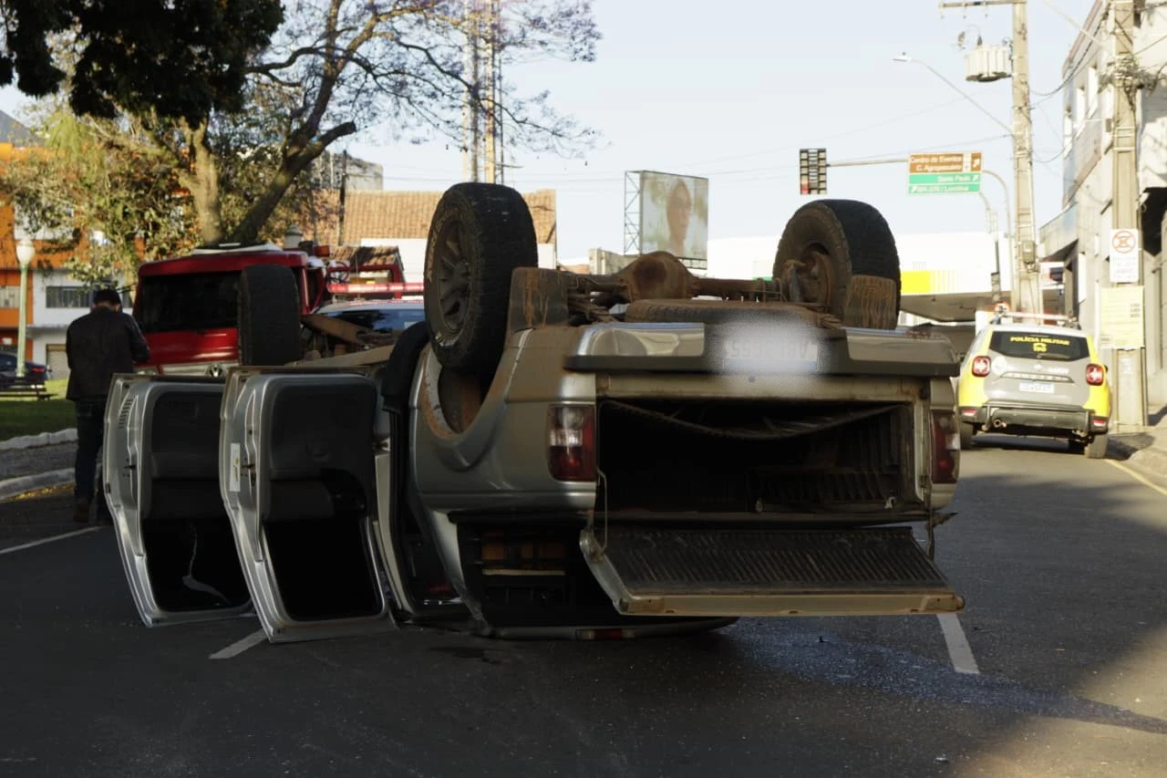 Uma caminhonete Ford Ranger prata capotou na esquina entre as Ruas Saldanha Marinho e Paula Xavier, no Centro, ao lado da Praça Barão de Guaraúna, no Centro de Ponta Grossa, no início da manhã deste domingo (19), em torno das 5h30. As equipes da Superintendência de Trânsito e Segurança Viária (STSV) e do Serviço de Atendimento Móvel de Urgência foram mobilizados para atender à ocorrência.
