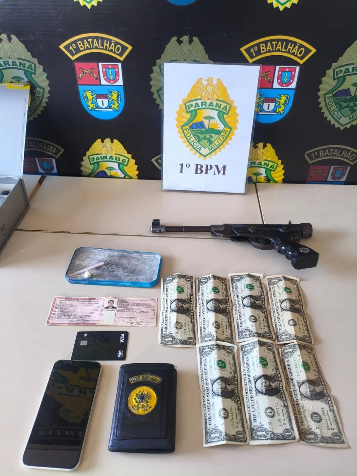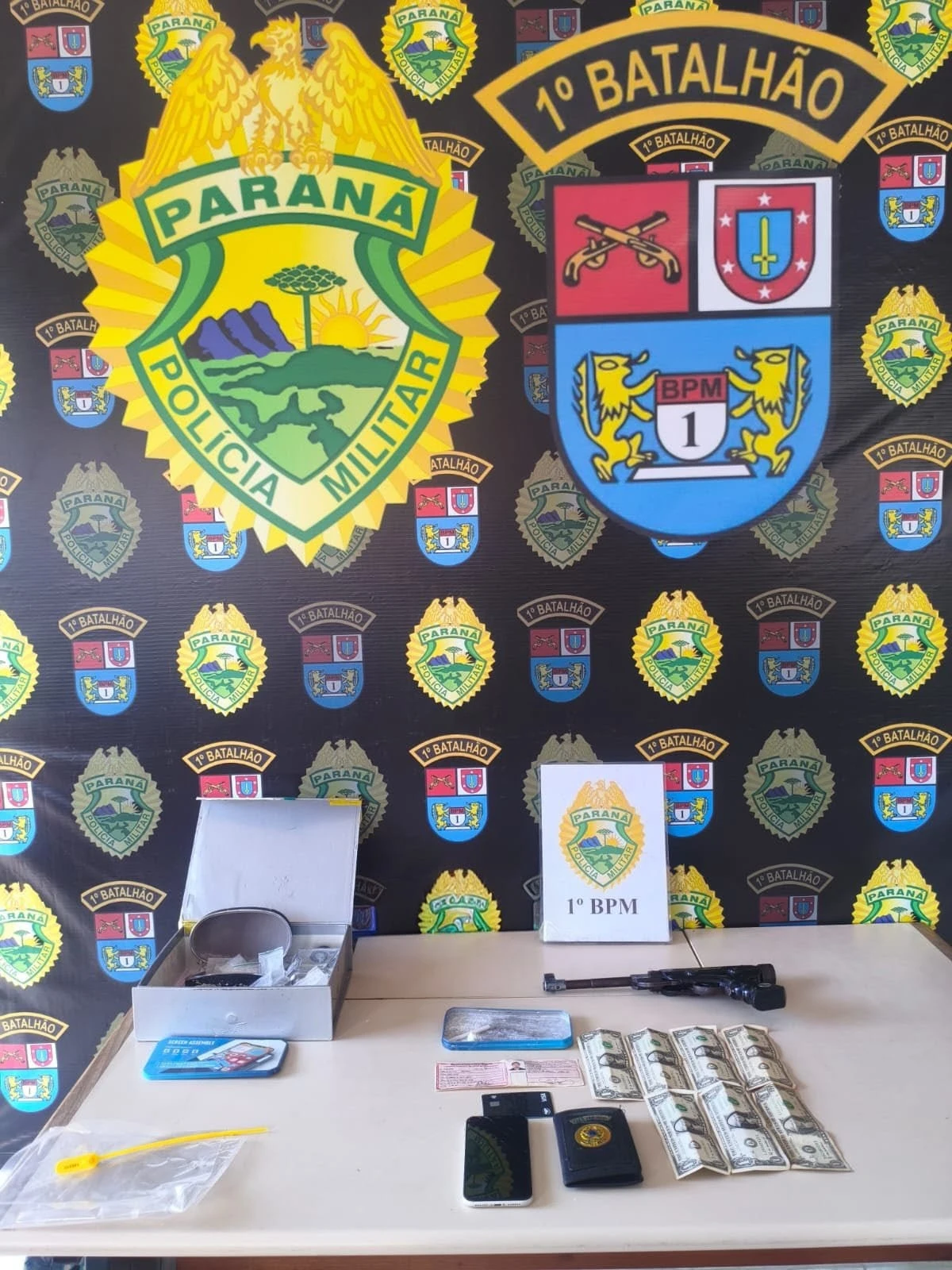 No local, os policiais abordaram dois homens que estavam em um veículo Citroën branco. Durante a revista, foi localizada uma arma de fabricação artesanal, além de pequenas quantidades de substâncias análogas ao crack e à cocaína.