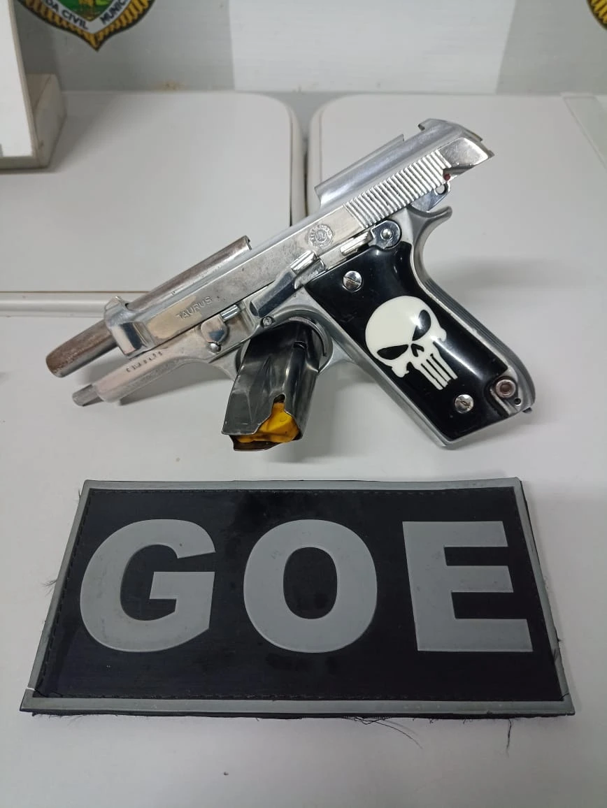 Segundo a GCM, uma equipe em patrulhamento no bairro Contorno visualizou o passageiro de um veículo Corsa manuseando uma arma de fogo. Realizada a abordagem no veículo, foi localizada uma Pistola Taurus 9mm Cromada com carregador e 15 munições intactas. O condutor, um homem de 26 anos, afirmou ser o proprietário da arma.