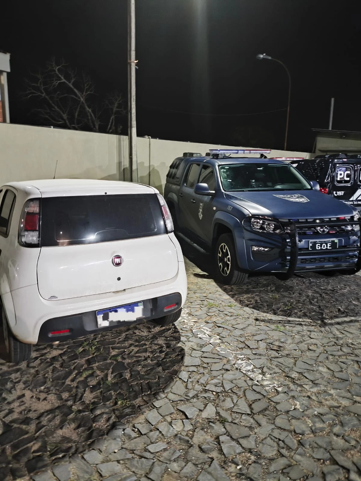 No bolso da calça do condutor do Uno, foi localizado mais um carregador alongamento, com 13 munições. Já na revista veicular, foi encontrada uma mochila de cor preta contendo seis tabletes de maconha, pesando 4kg, um invólucro de cocaína, pesando 50 gramas e dois celulares. Diante dos fatos foi dada voz de prisão ao cidadão, informado de seus direitos constitucionais e encaminhado até a 13ª Subdivisão Policial (13ª SDP) para providências cabíveis, mediante alegação de porte ilegal de arma de fogo e tráfico de drogas.