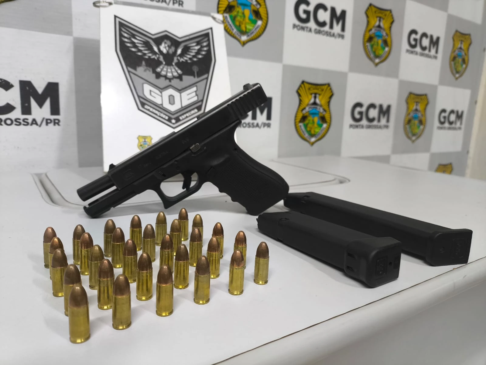A equipe patrulhava a região do Santa Paula quando abordou um veículo Fiat Uno Vivace branco. O condutor, de 30 anos, ao descer, portava na cintura uma arma de fogo. Na revista pessoal, os guardas municipais localizaram uma pistola Glock de calibre 9mm, carregada com 17 munições.