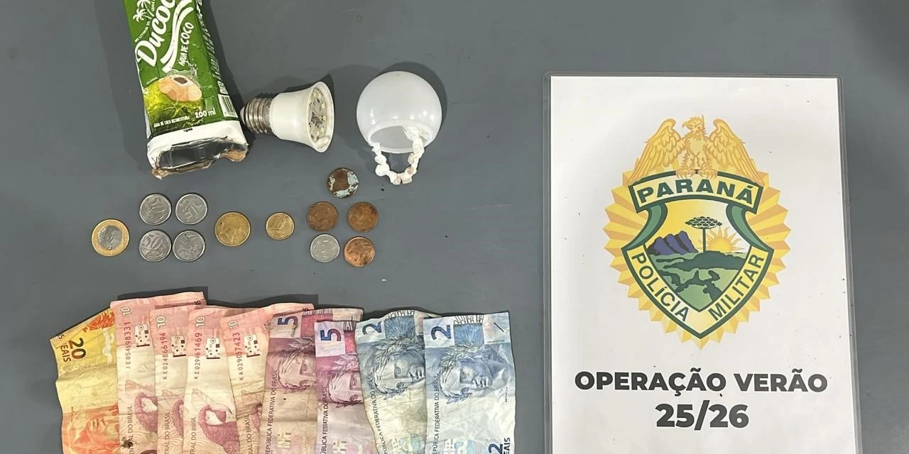 De forma espontânea, a mulher afirmou ser usuária de crack e relatou que havia adquirido a droga dos dois homens que estavam do outro lado da via. Diante da informação, os masculinos foram abordados. No local onde eles estavam sentados foi localizada uma lâmpada contendo sete pedras de substância análoga a crack, além de dinheiro fracionado, característica comum da comercialização de drogas.