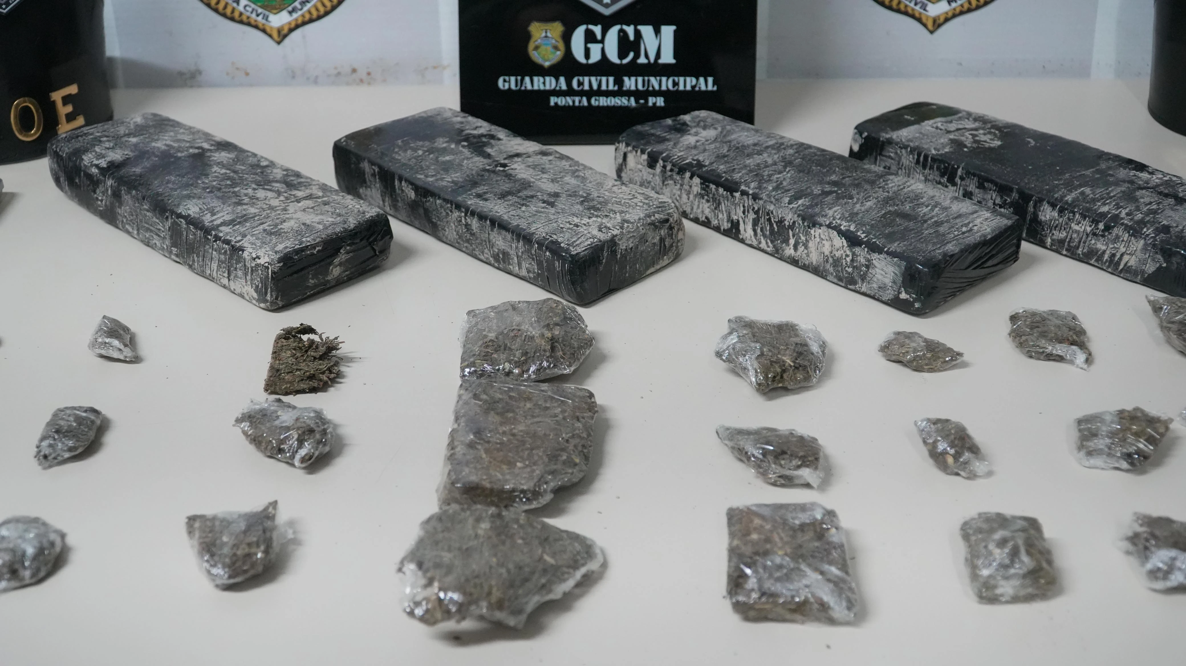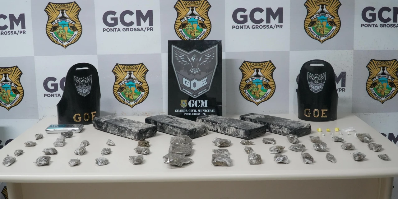 A Guarda Civil Municipal (GCM), por meio do Grupamento de Operações Especiais (GOE), prendeu dois homens pelo crime de tráfico de drogas cometido na região do Contorno, em Ponta Grossa, durante a noite da última terça-feira (6). Com o indivíduo foram apreendidos quatro quilos de maconha, porções de crack, cocaína e haxixe.