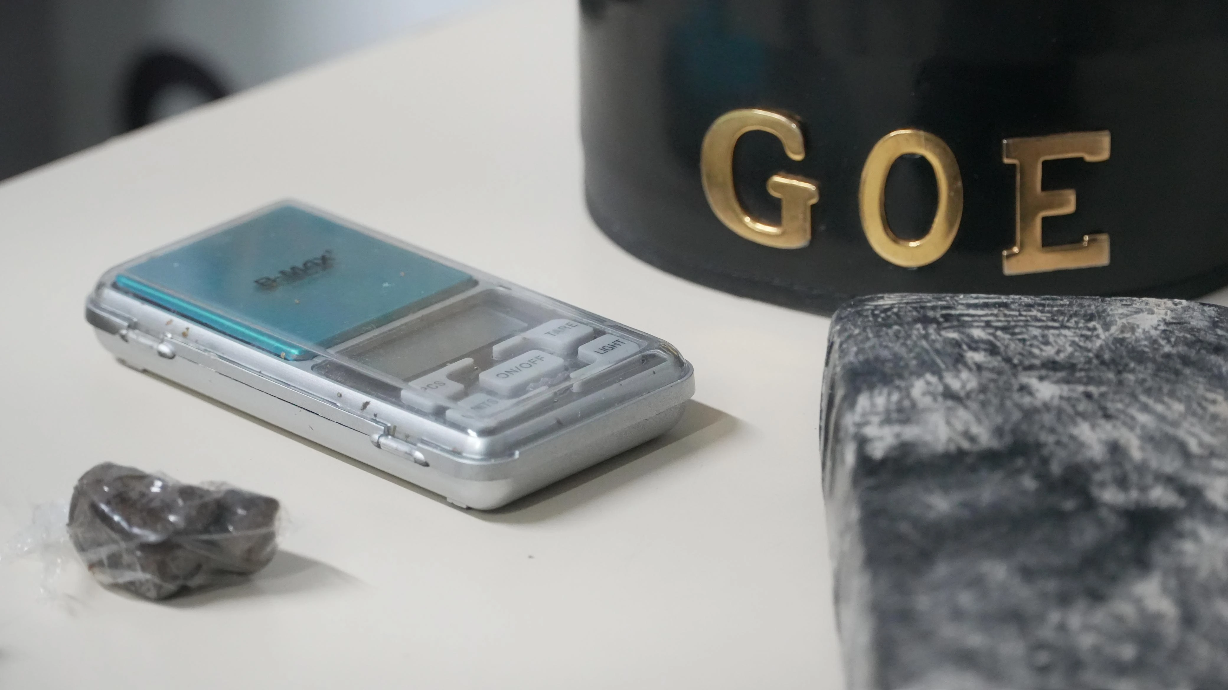 Após a abordagem, os agentes realizaram buscas pelas proximidades, onde uma mochila contendo diversas substâncias de entorpecentes foi apreendida. Dentro dela estavam: quatro quilos de maconha, porções de crack, cocaína, haxixe e uma balança de precisão.