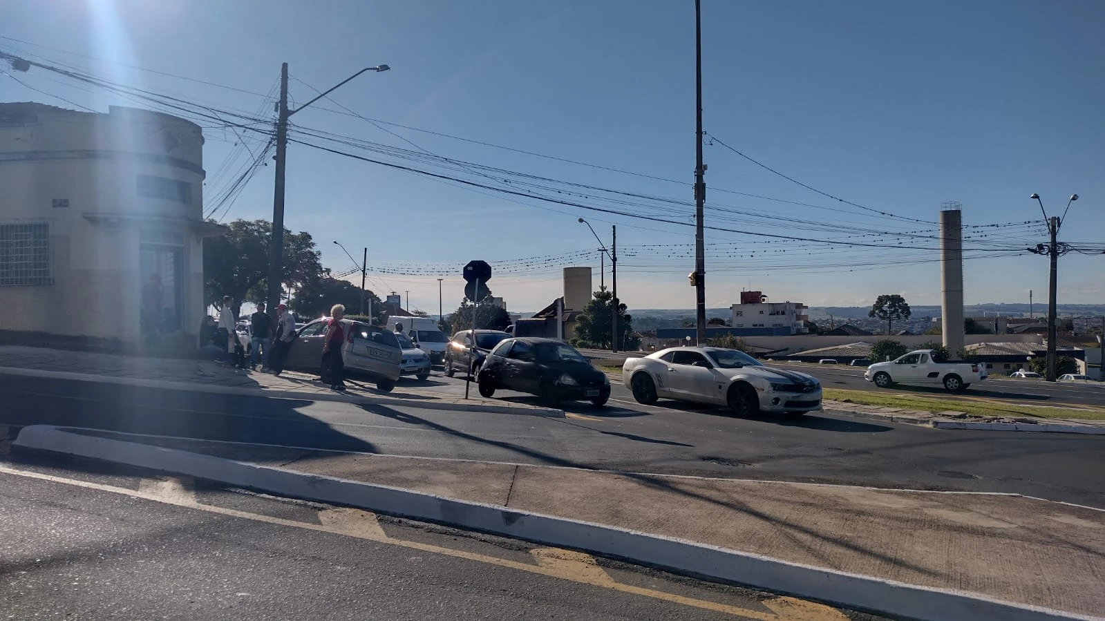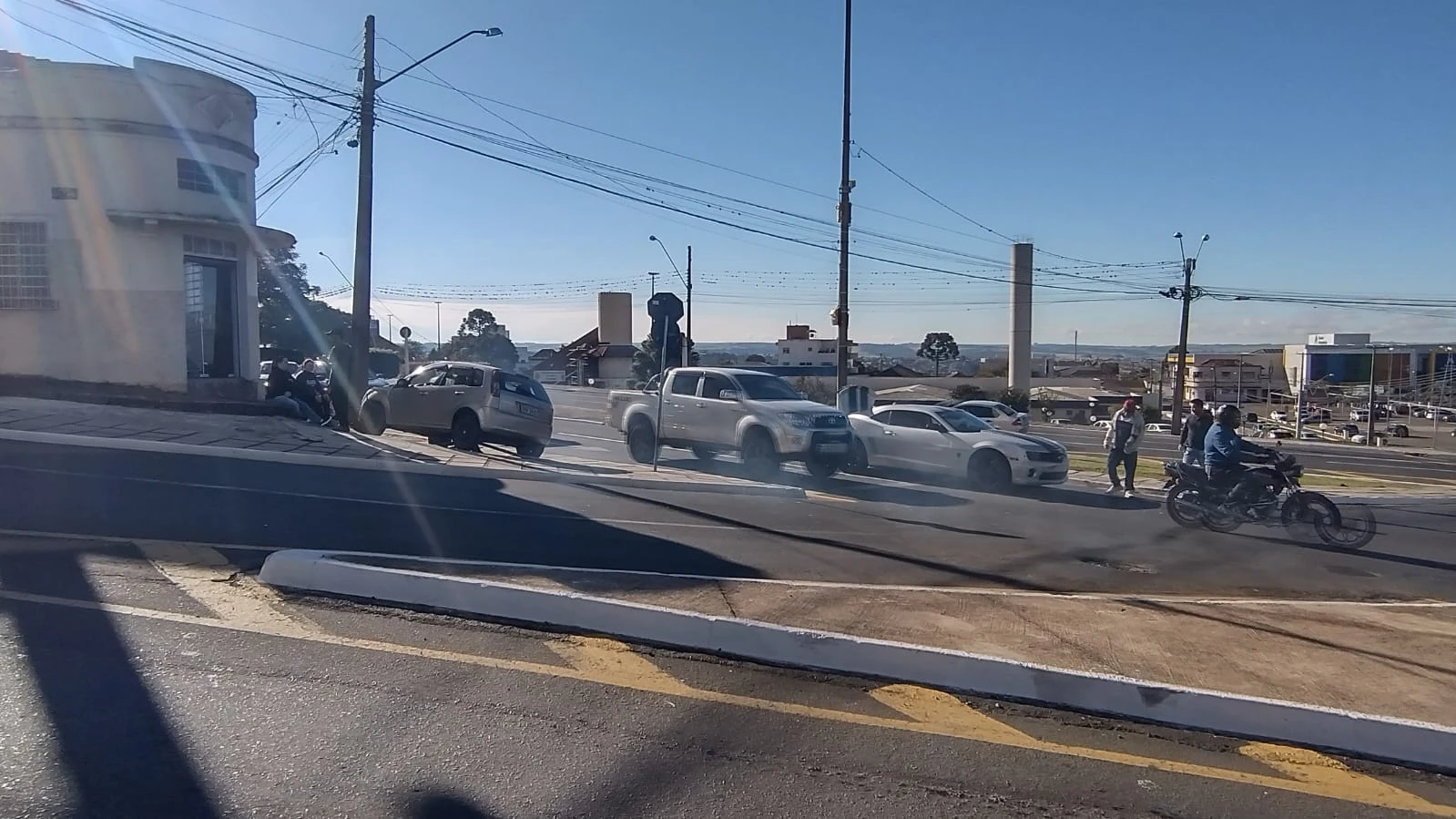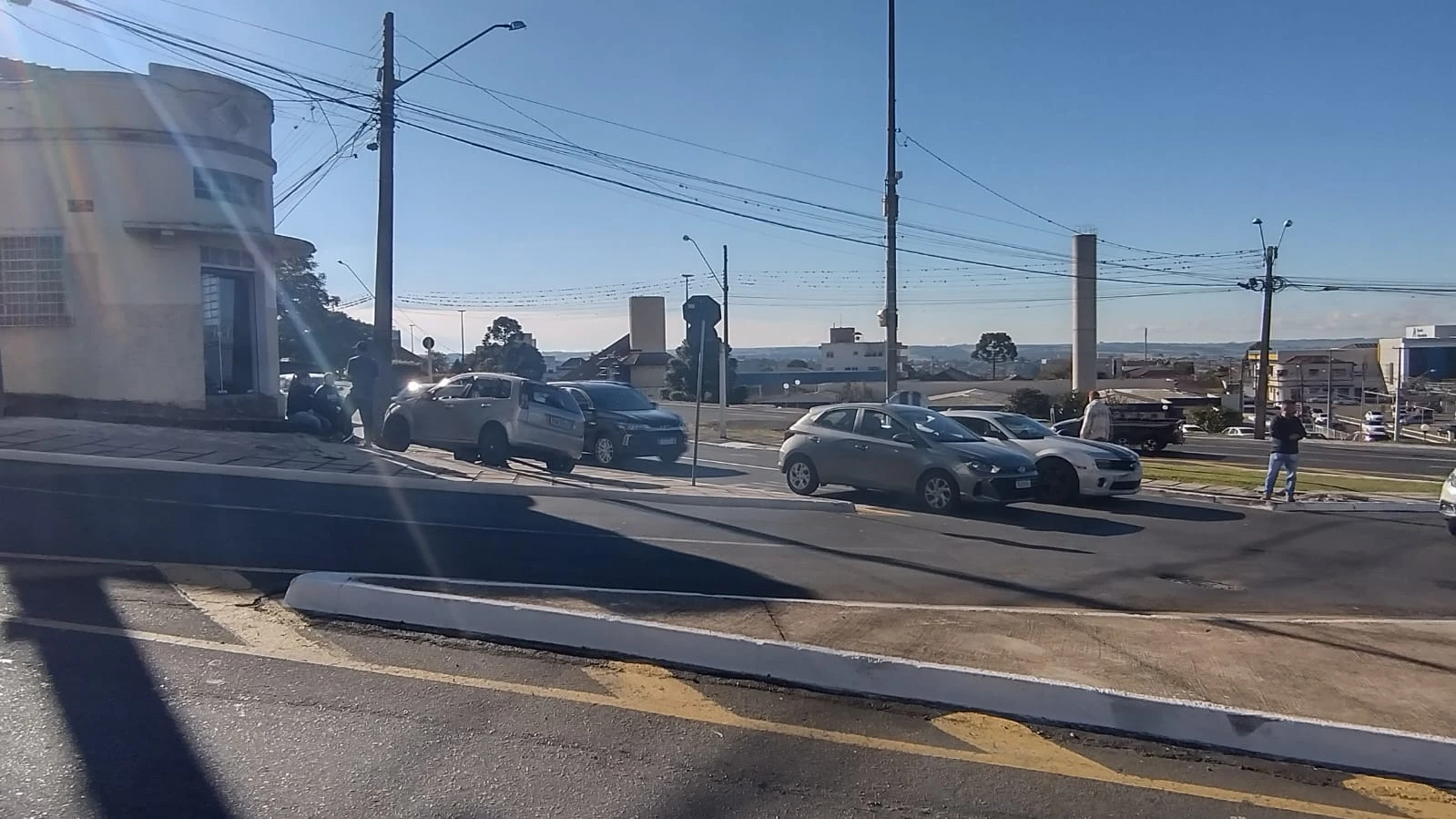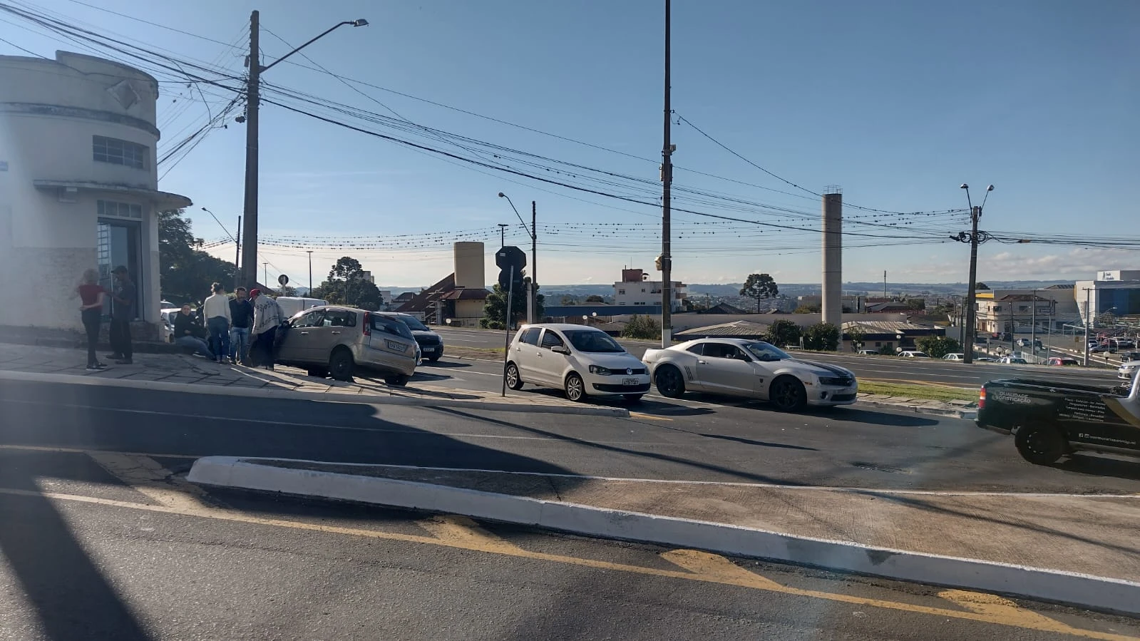 Uma colisão entre um Chevrolet Camaro e um Ford Fiesta aconteceu na manhã desta quinta-feira (27), na Rotatória dos Tropeiros, nas proximidades da Vila Estrela. Com a colisão o Fiesta acabou adentrando a calçada e derrubando uma placa de sinalização no local.
