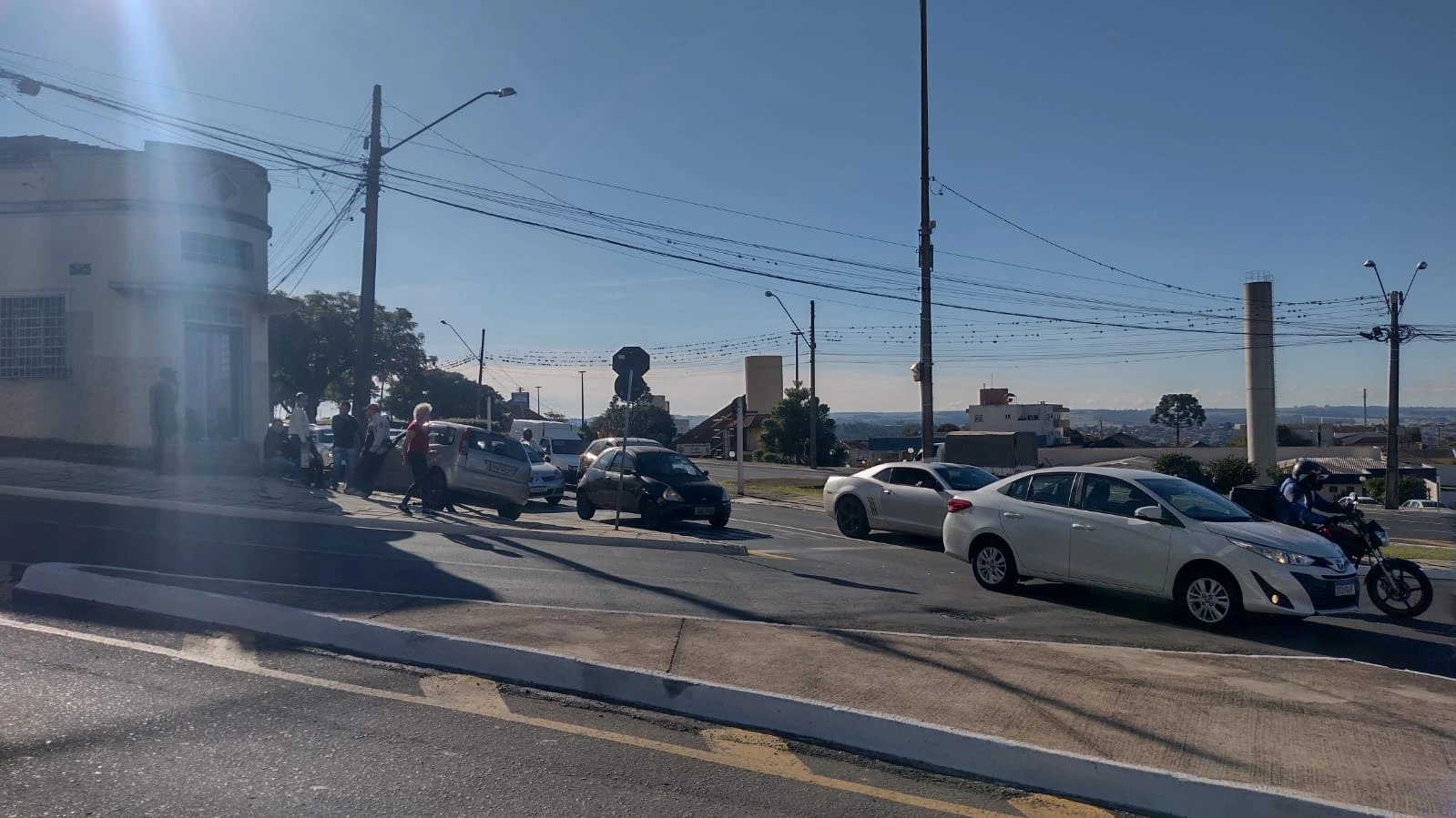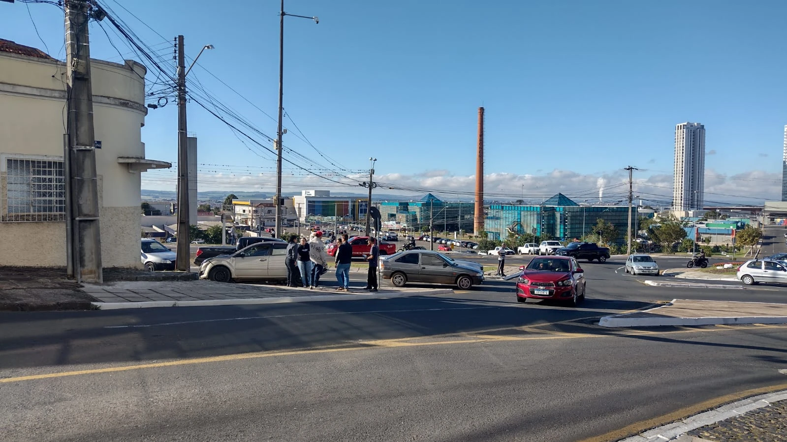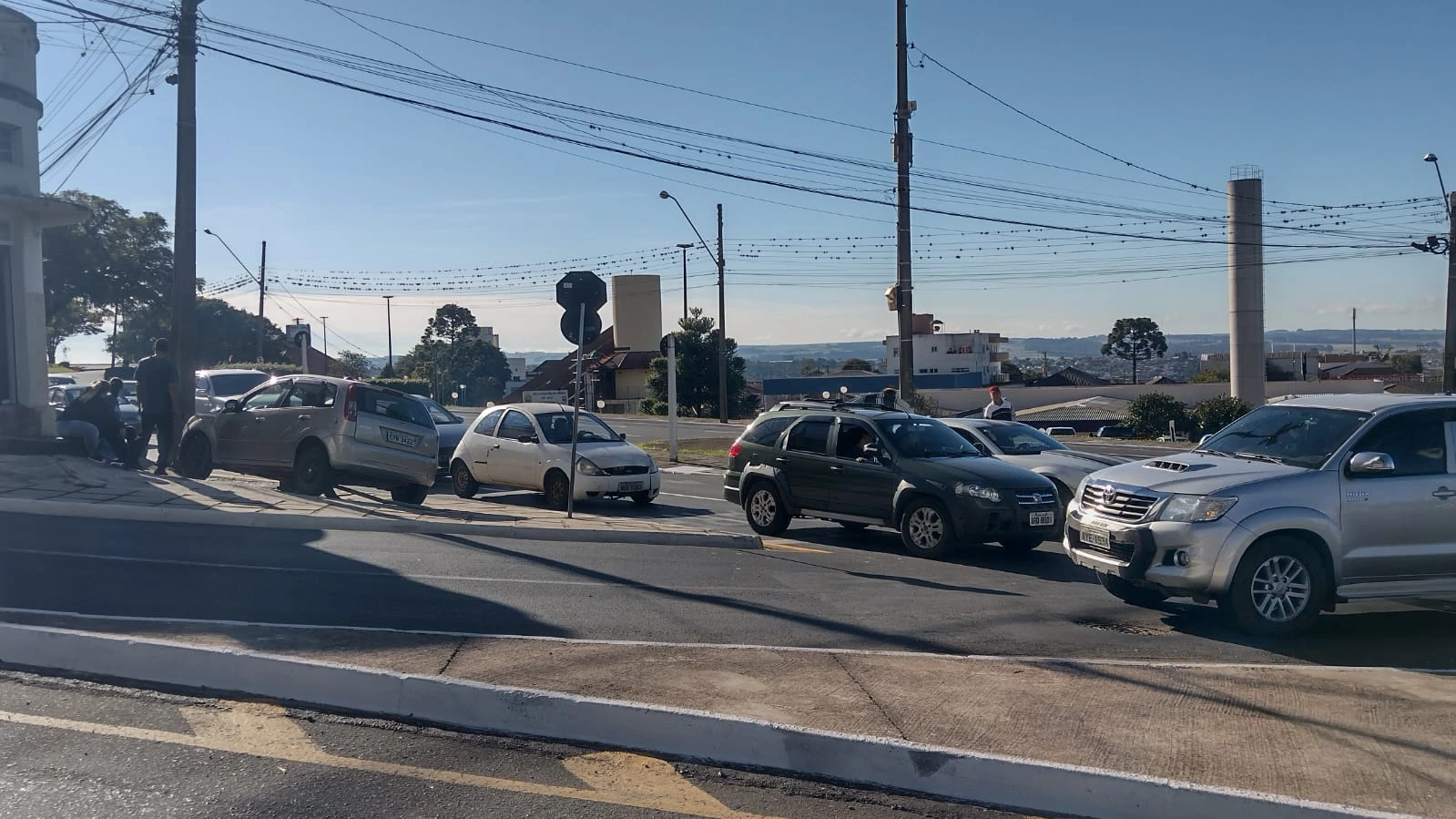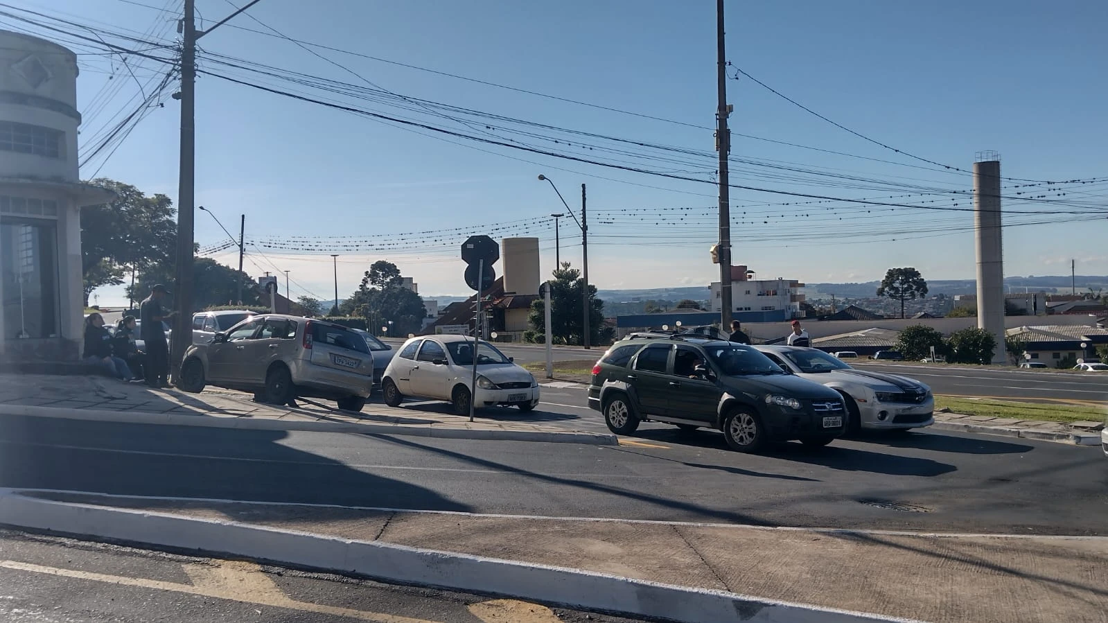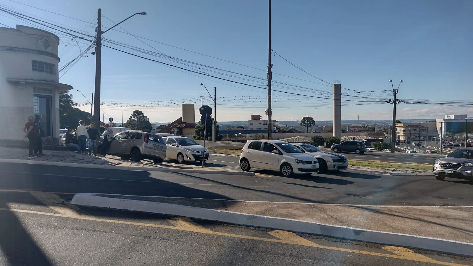 Uma colisão entre um Chevrolet Camaro e um Ford Fiesta aconteceu na manhã desta quinta-feira (27), na Rotatória dos Tropeiros, nas proximidades da Vila Estrela. Com a colisão o Fiesta acabou adentrando a calçada e derrubando uma placa de sinalização no local.