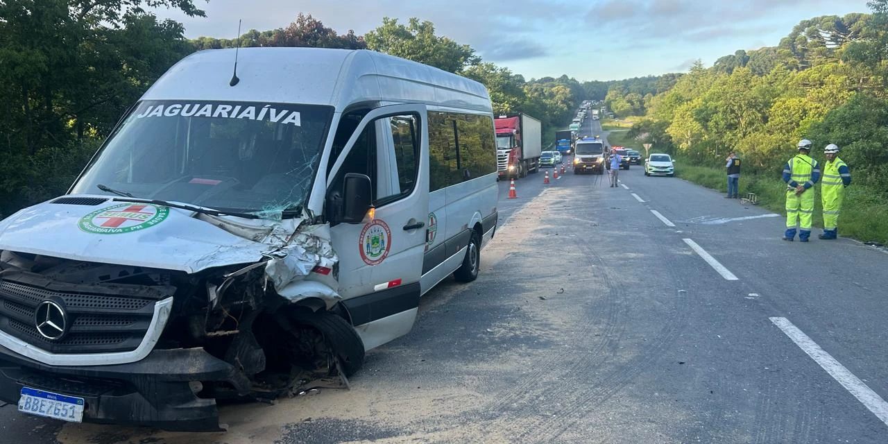 Um acidente de trânsito envolvendo uma van da Saúde do município de Jaguariaíva e um caminhão do tipo bitrem foi registrado na BR-277, na Serra de São Luís do Purunã, no sentido interior–capital da rodovia, nesta quinta-feira (05). A colisão foi traseira e envolveu apenas os dois veículos.