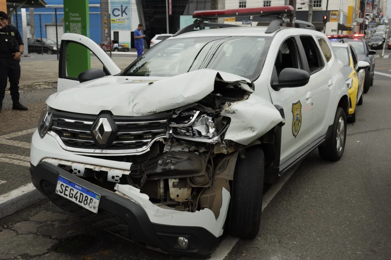 Uma viatura da Guarda Civil Municipal (GCM) de Ponta Grossa e uma de Patrulhamento Viária colidiram na tarde desta sexta-feira (7) na Avenida Vicente Machado, nas proximidades do Terminal Central. O acidente ocorreu por volta das 17h, envolvendo veículos que estavam em deslocamento em comboio.