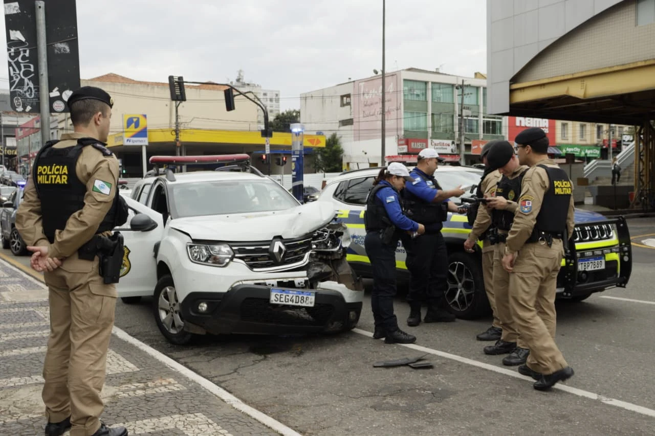A colisão aconteceu quando o comboio reduziu a velocidade, e uma viatura do Grupamento de Ações Táticas (GAT), modelo Duster, bateu na traseira de uma viatura do setor de trânsito viário, modelo Jeep Compass.
