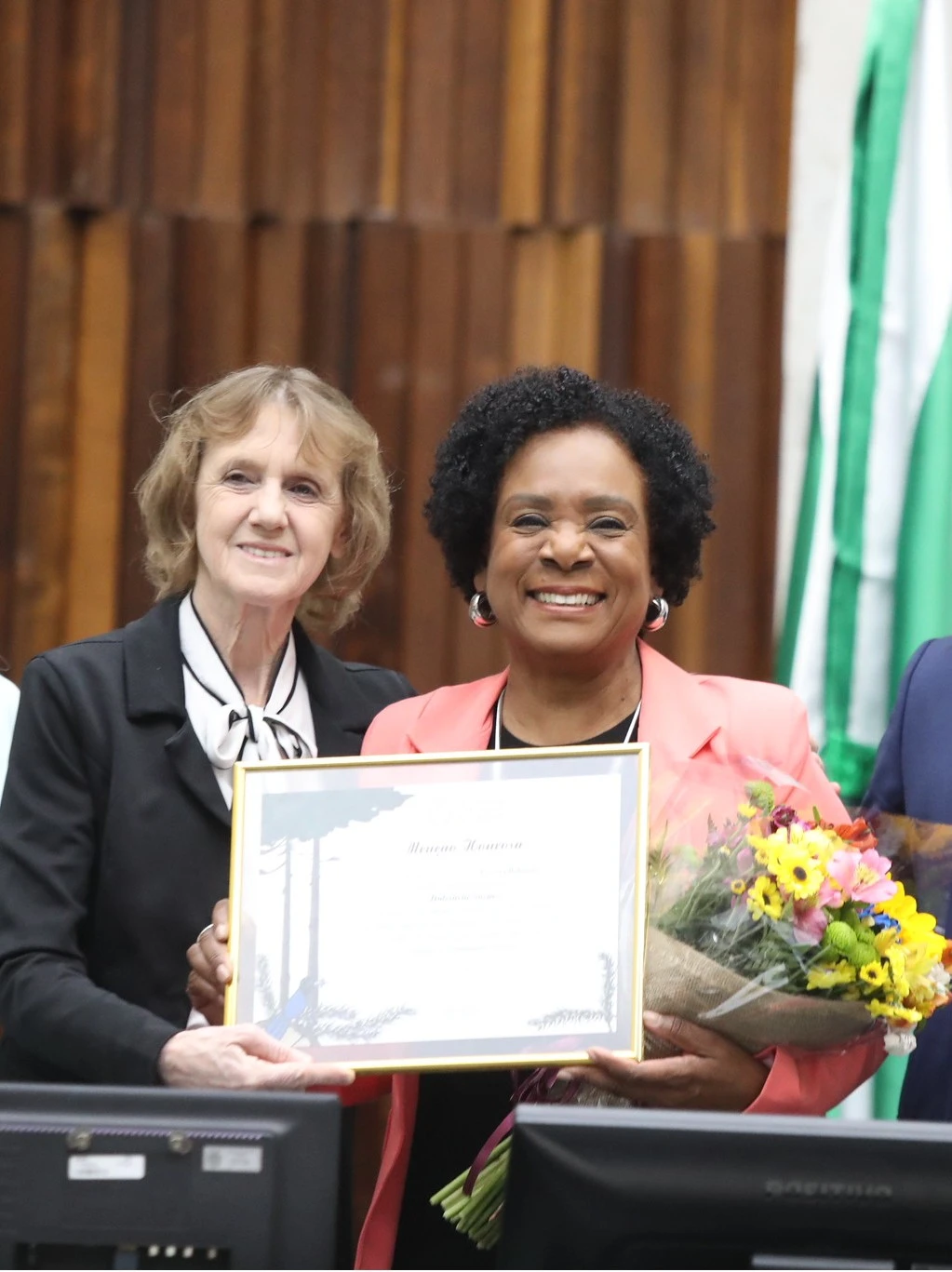 A deputada estadual Luciana Rafagnin (PT) entregou nesta segunda-feira (17) uma menção honrosa à jornalista Dulcineia Novaes, em reconhecimento à sua trajetória de destaque no jornalismo paranaense e nacional. Com mais de quatro décadas dedicadas à comunicação, Dulcineia se consolidou como uma das vozes mais respeitadas da televisão brasileira, um símbolo de representatividade, coragem e superação.