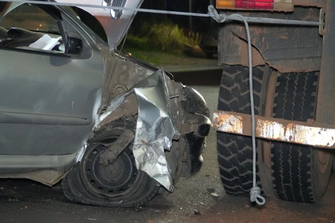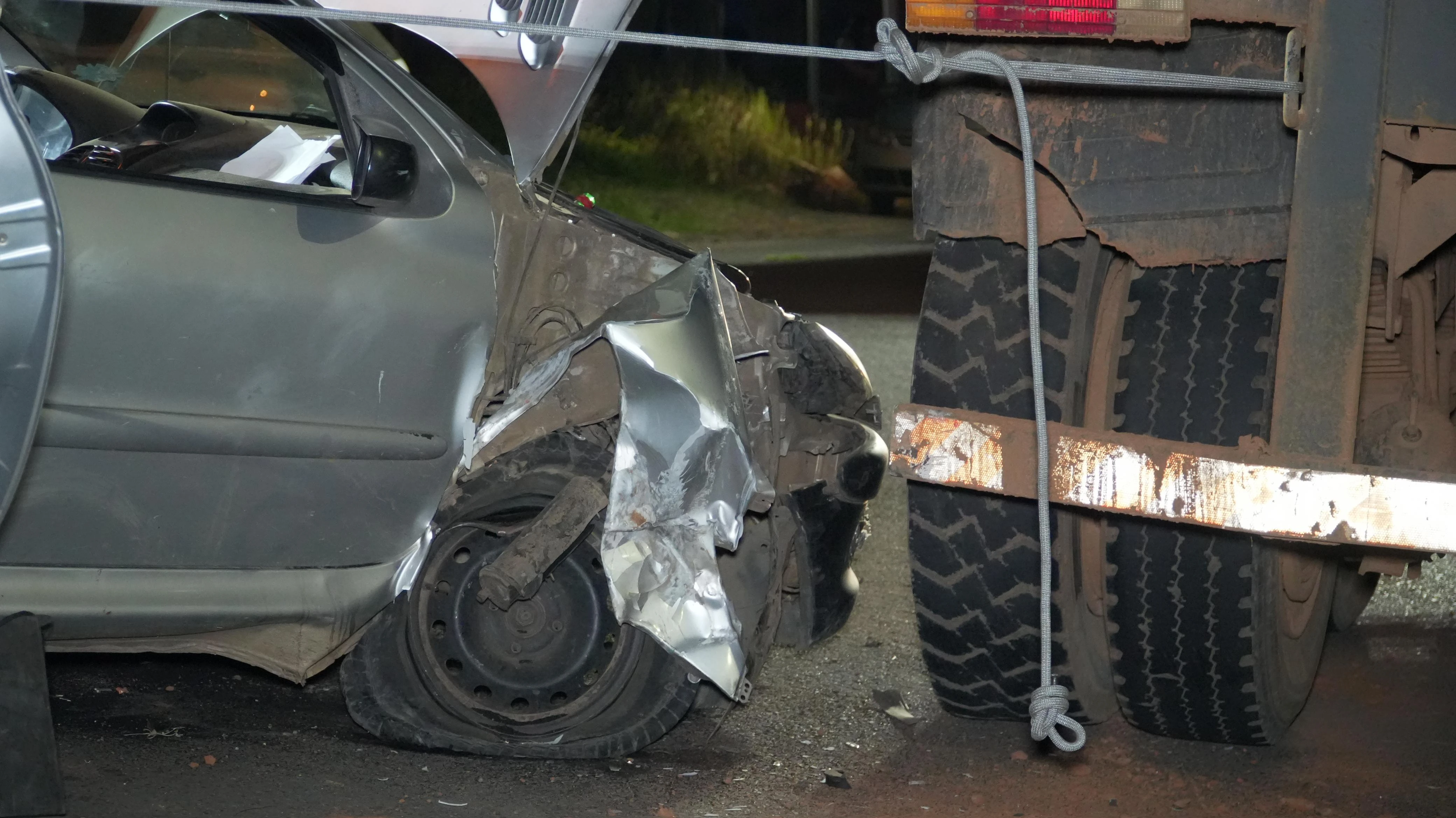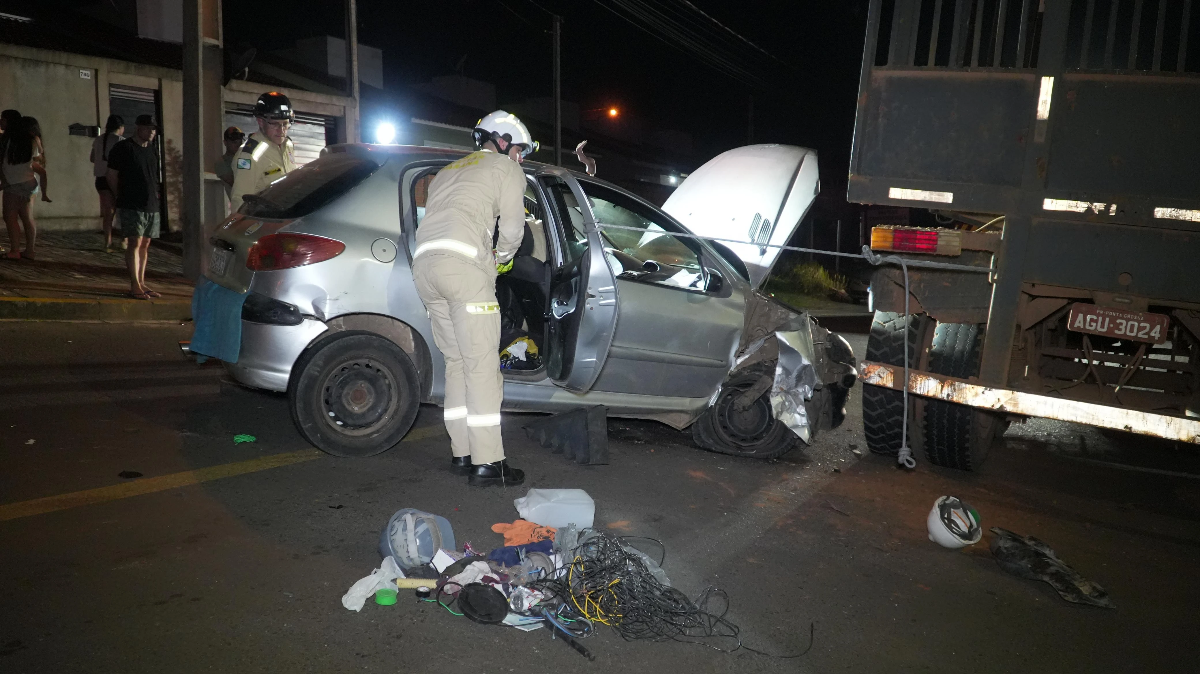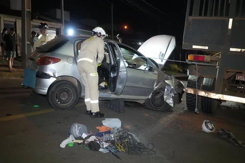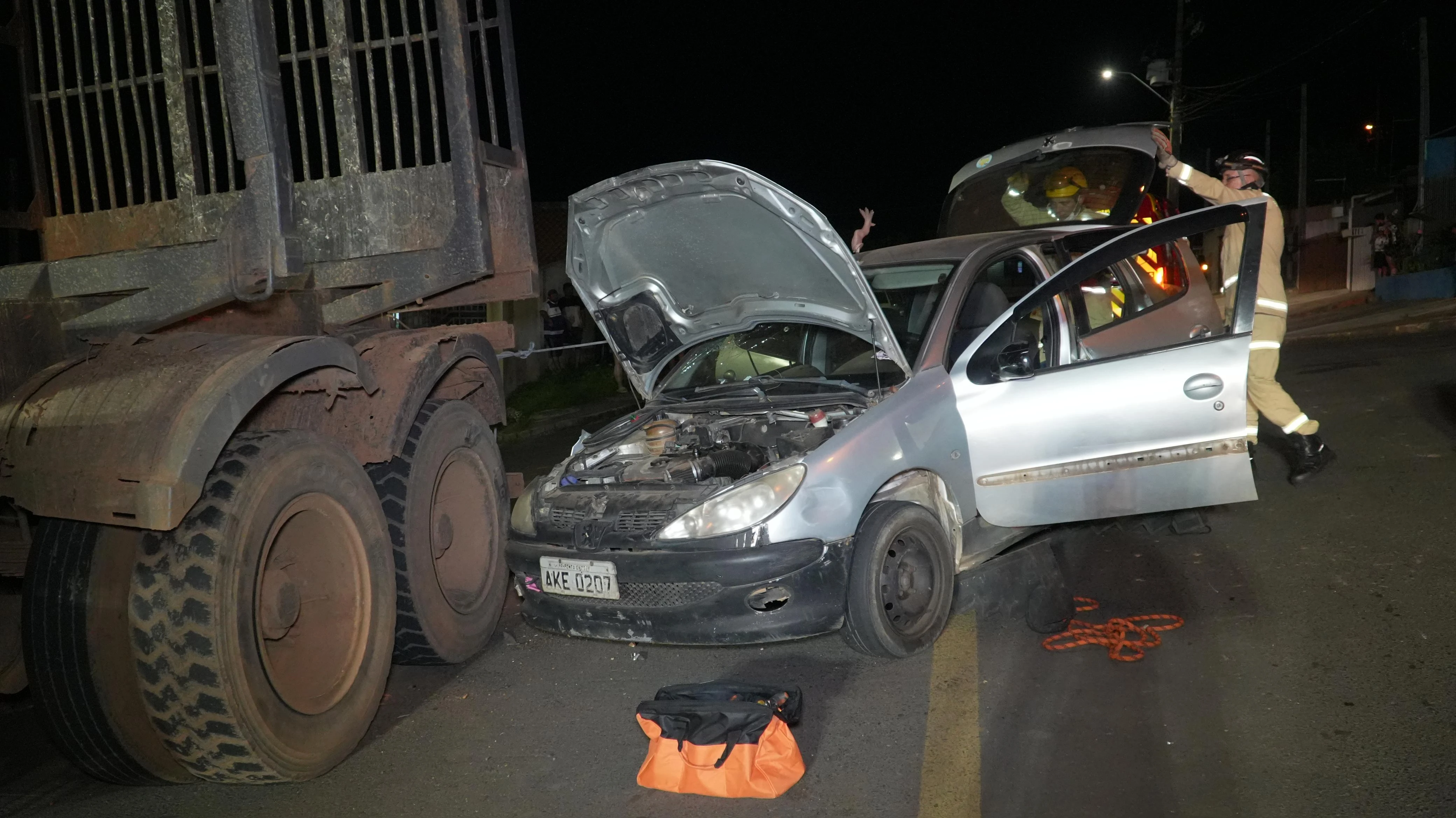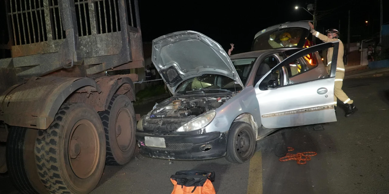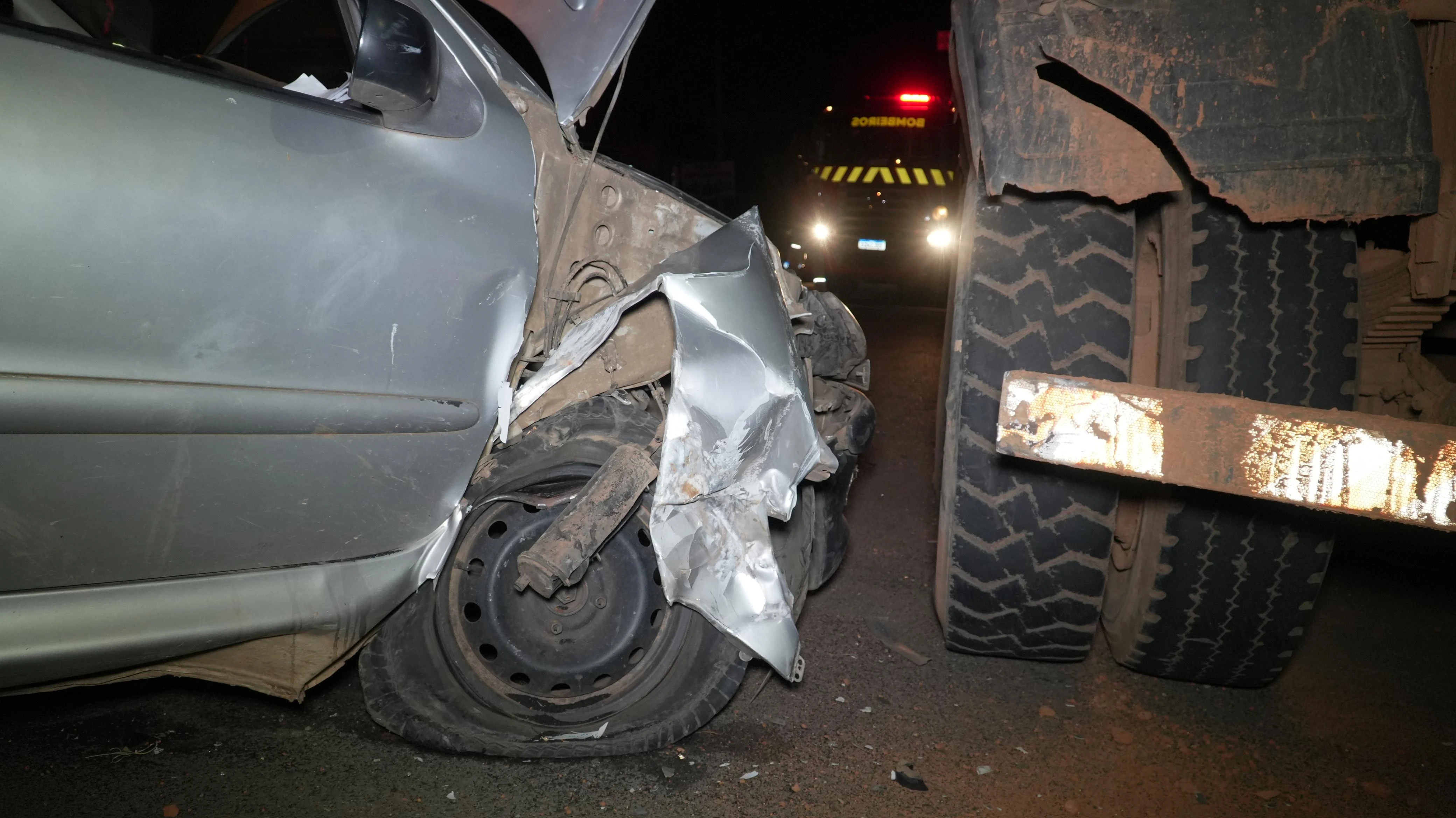 Conforme informações apuradas pela equipe do D´Ponta News, o Peugeot seguia pela Bachir Sleiman Fayad quando colidiu com a traseira do caminhão estacionado no local. Duas pessoas, incluindo o motorista, fugiram após a batida.